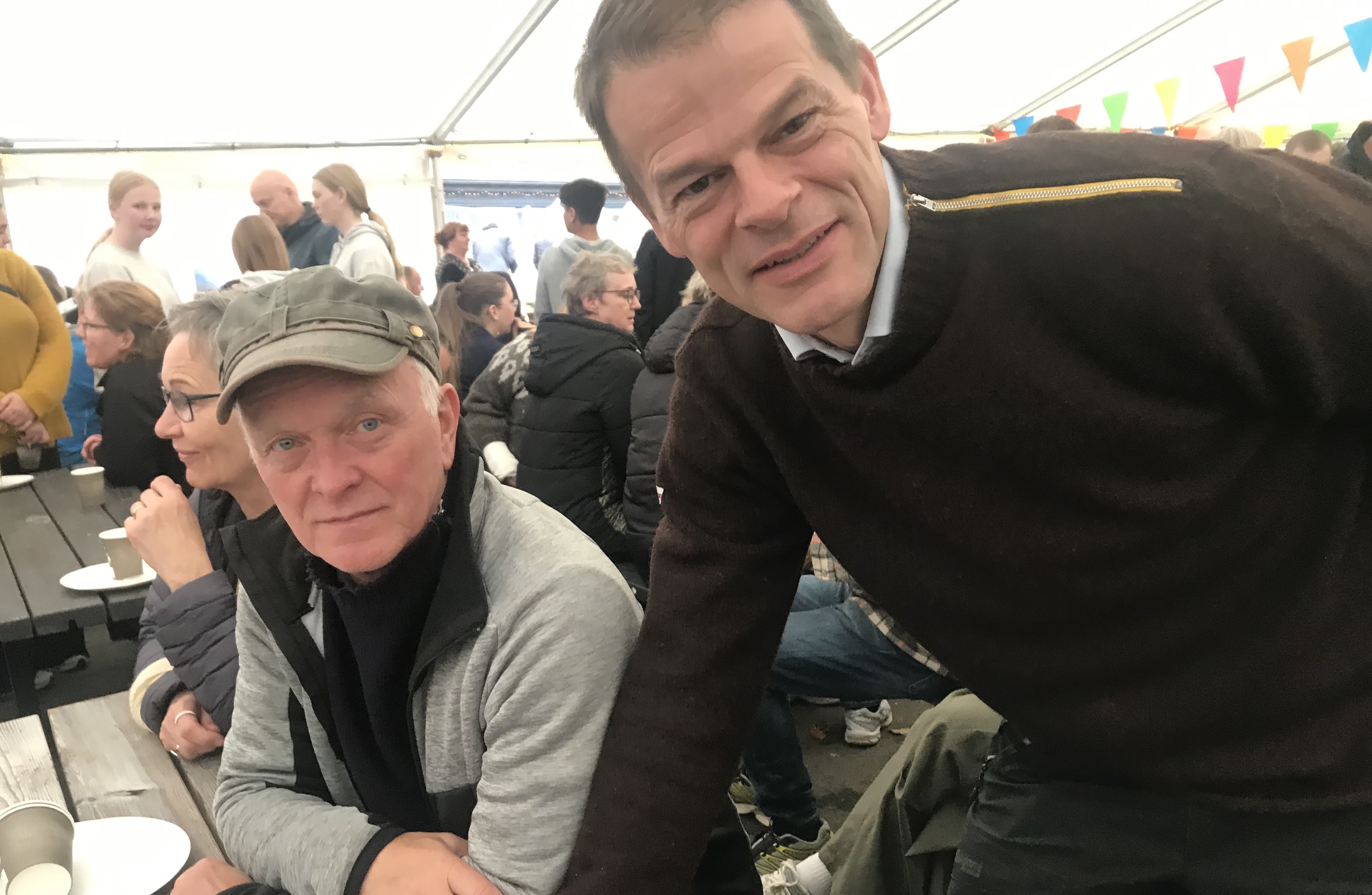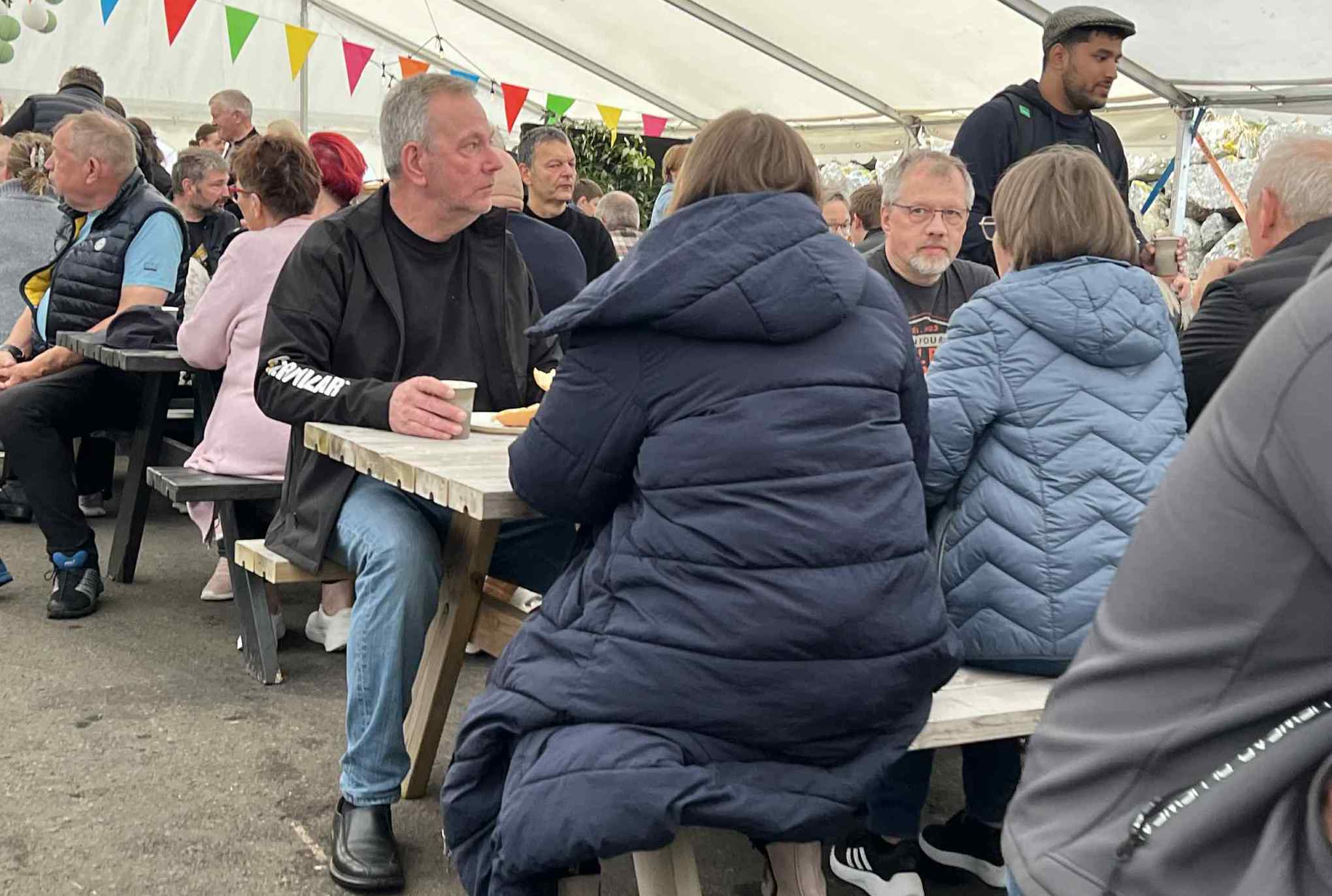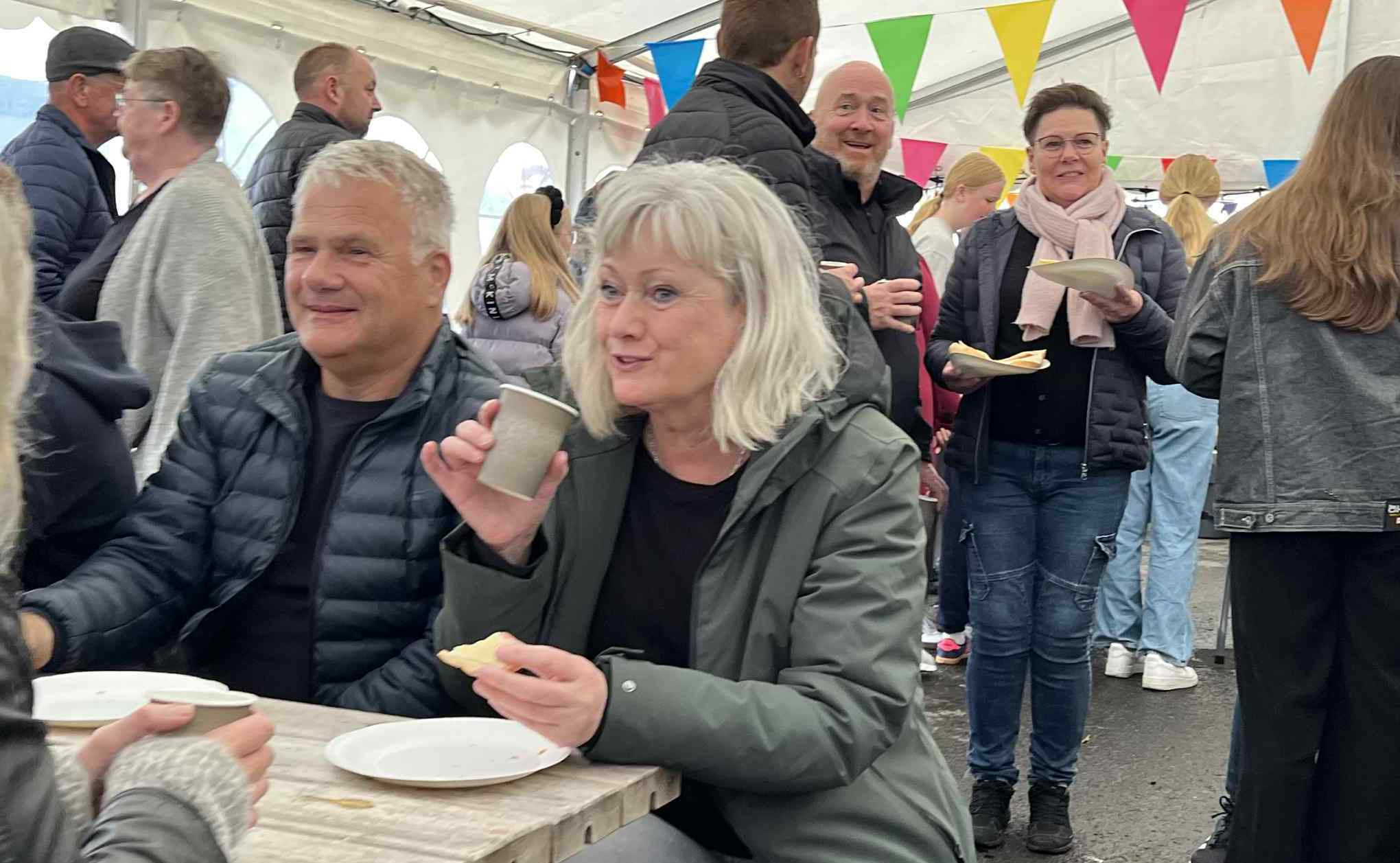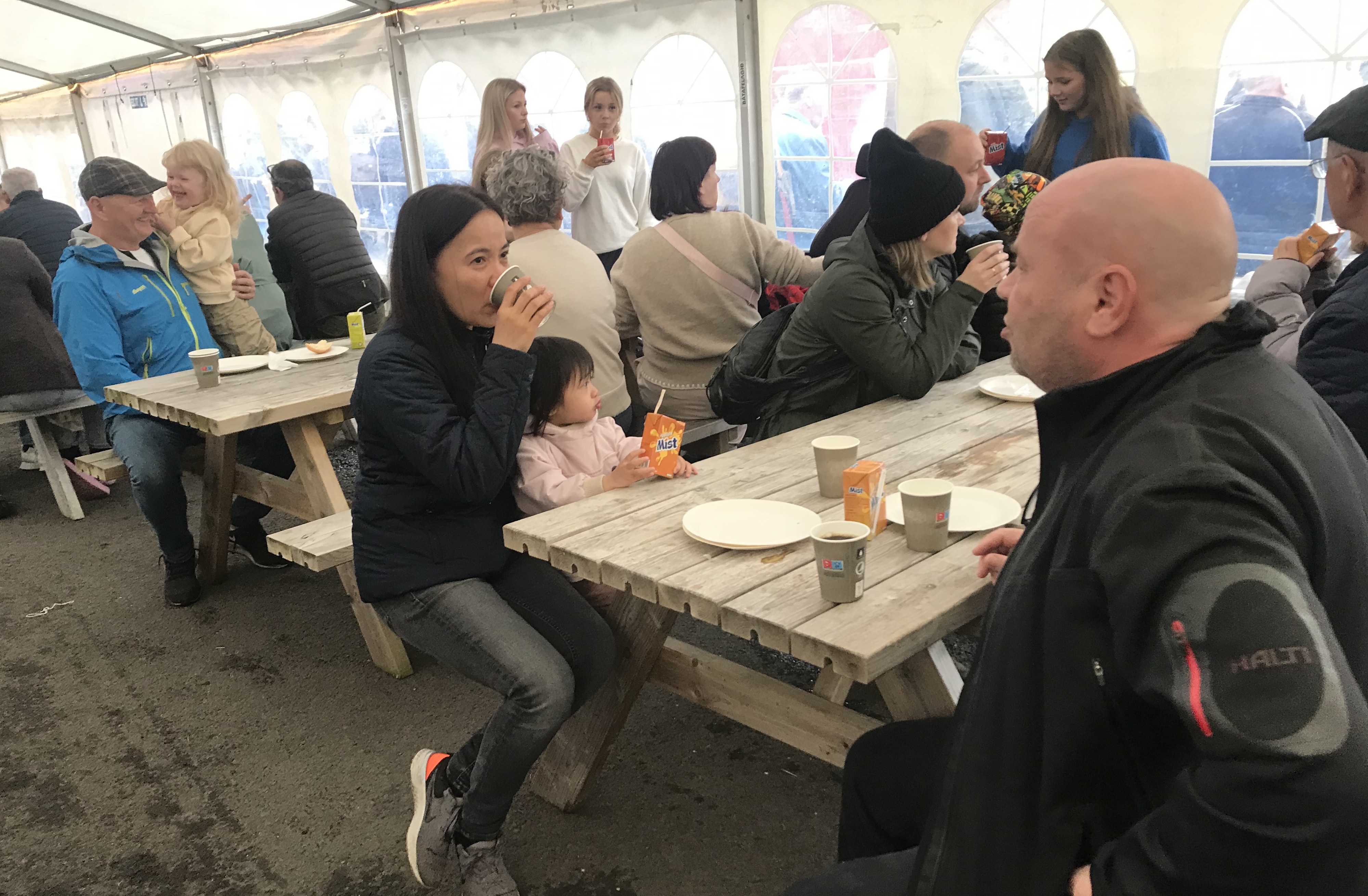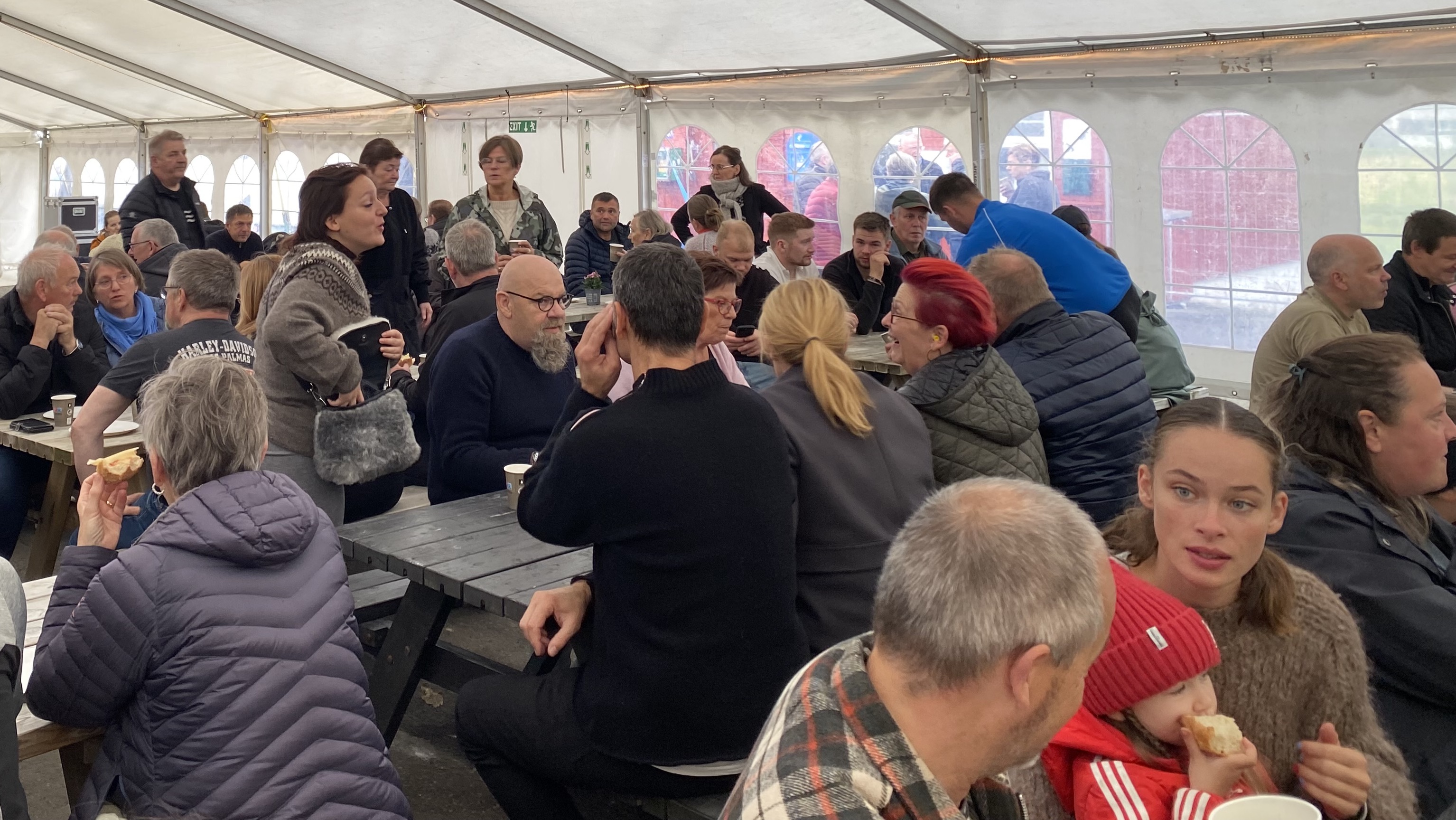 Í tjaldinum var skipað so fyri, at her vóru nógv sitipláss og tey, sum ikki fingu pláss at sita í tjaldinum, sótu uttanfyri í góðveðrinum.