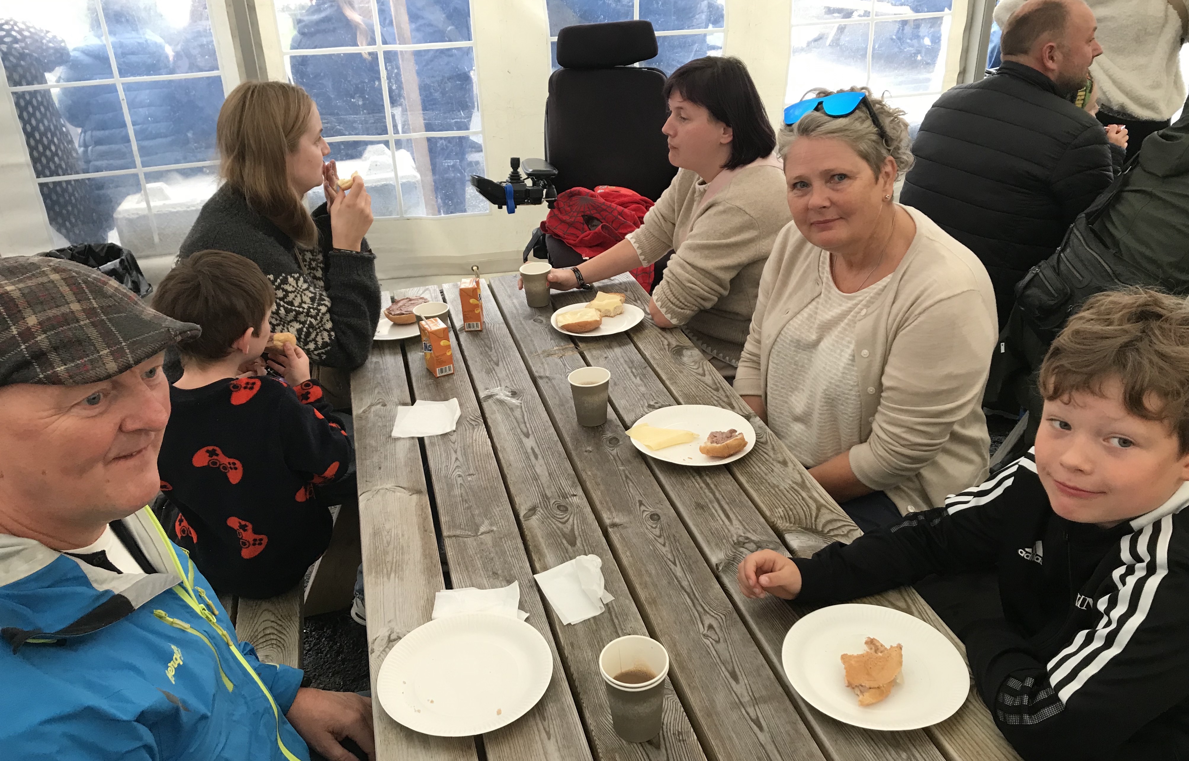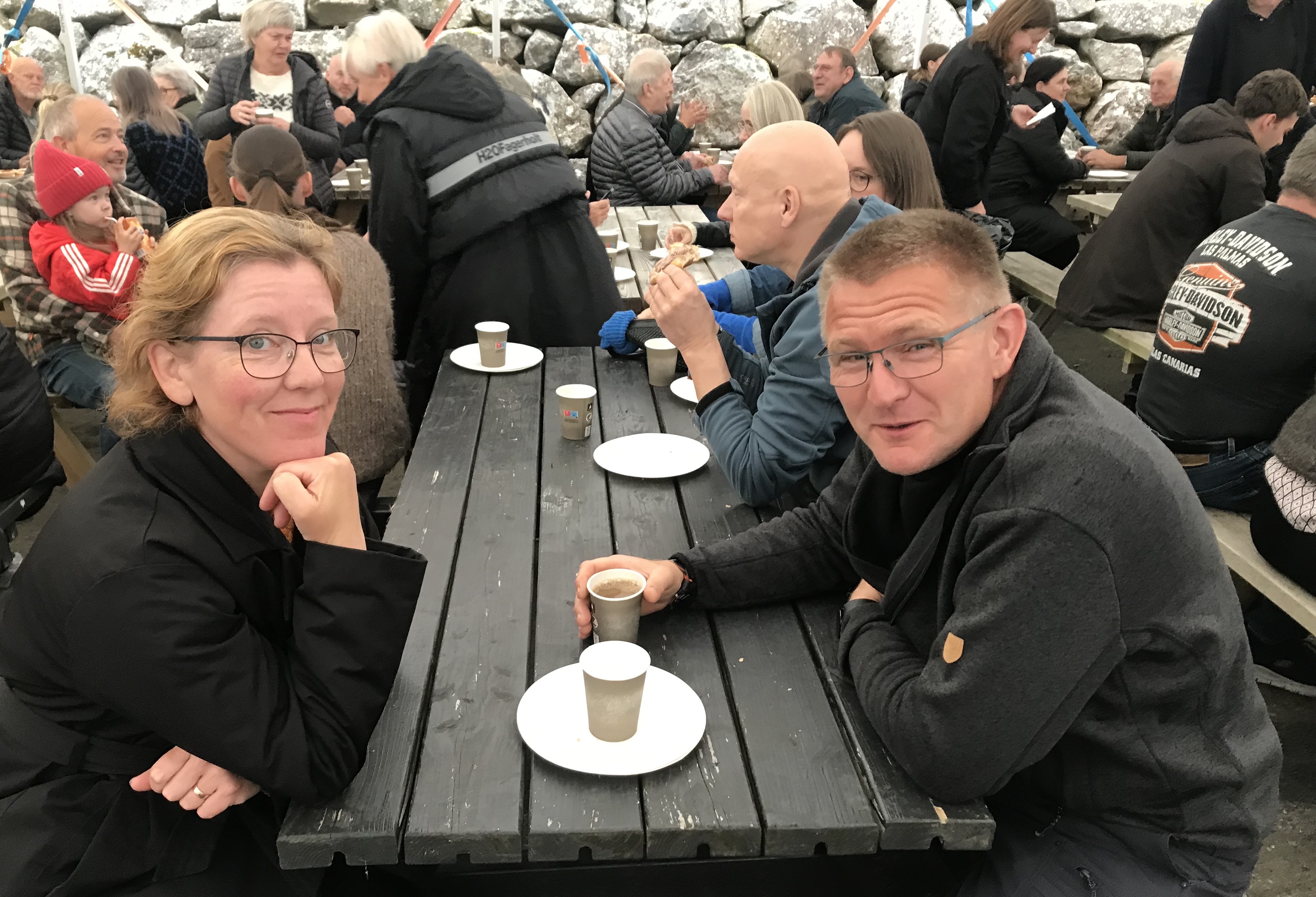 Vit tóku nakrar myndir undir morgunmatarborðinum. Her var gott lag á fólki - nógv hugnalig prát og øll, sum vildu, fingu mettuna.