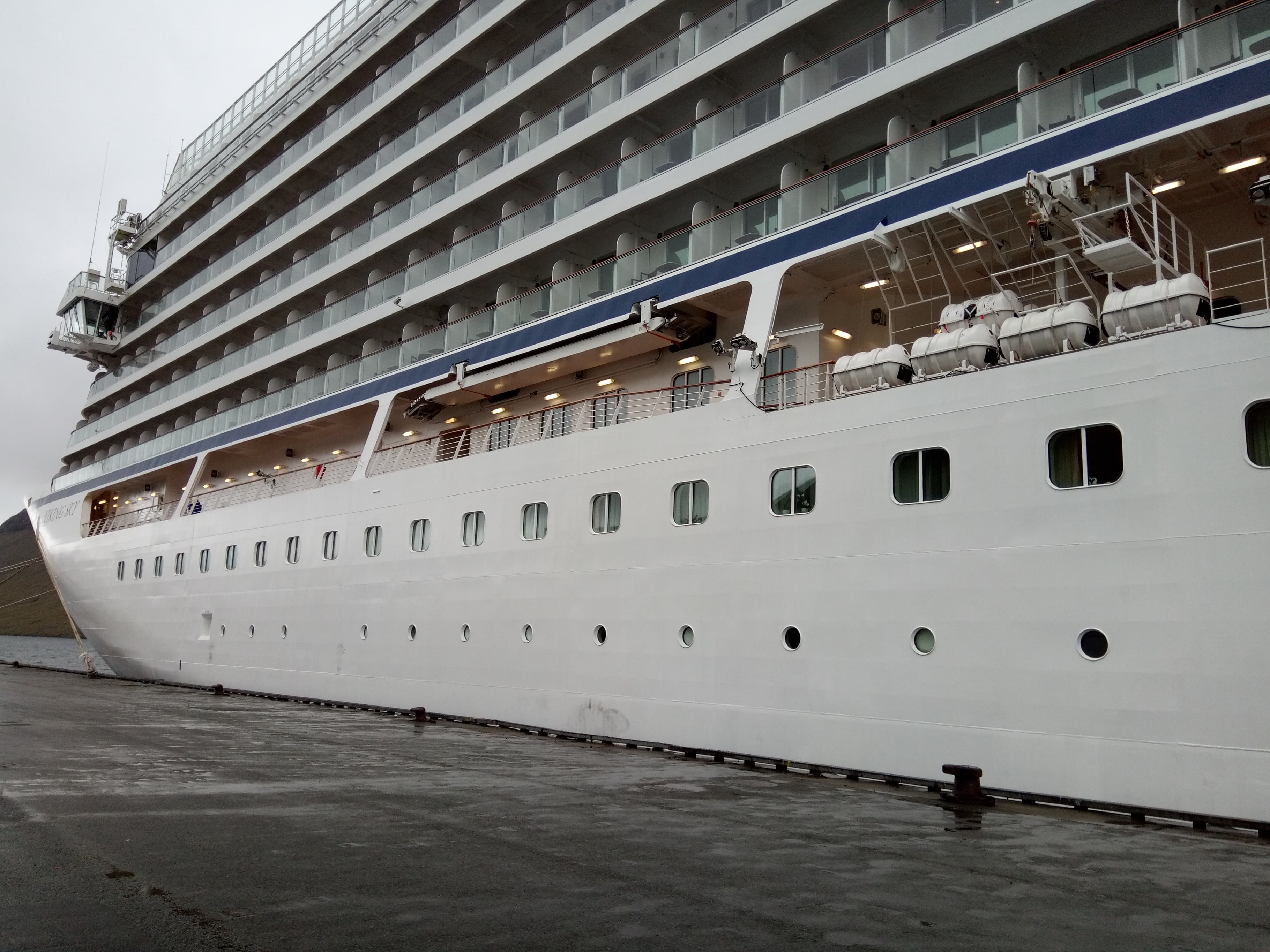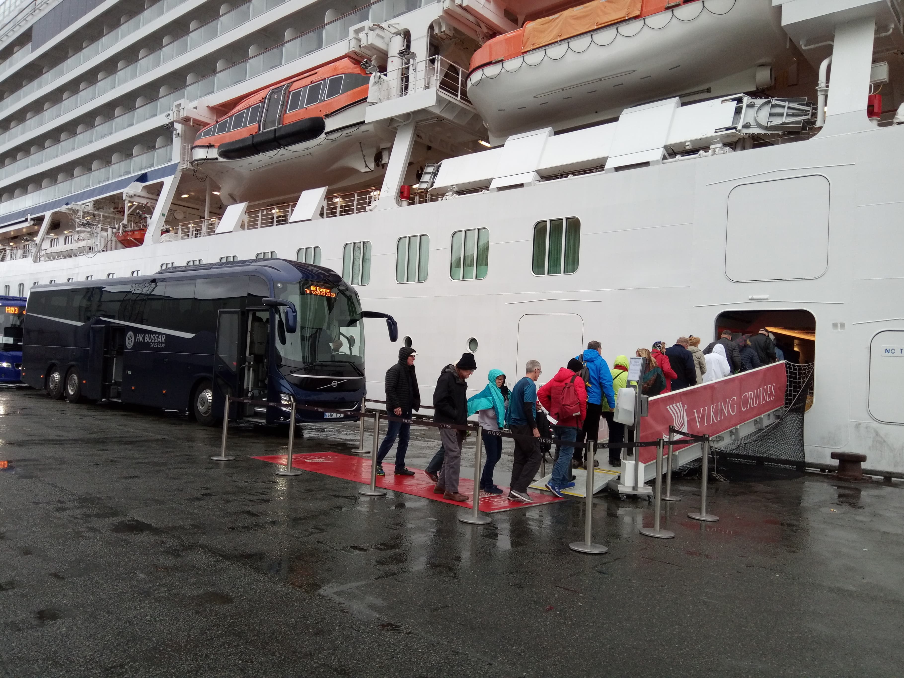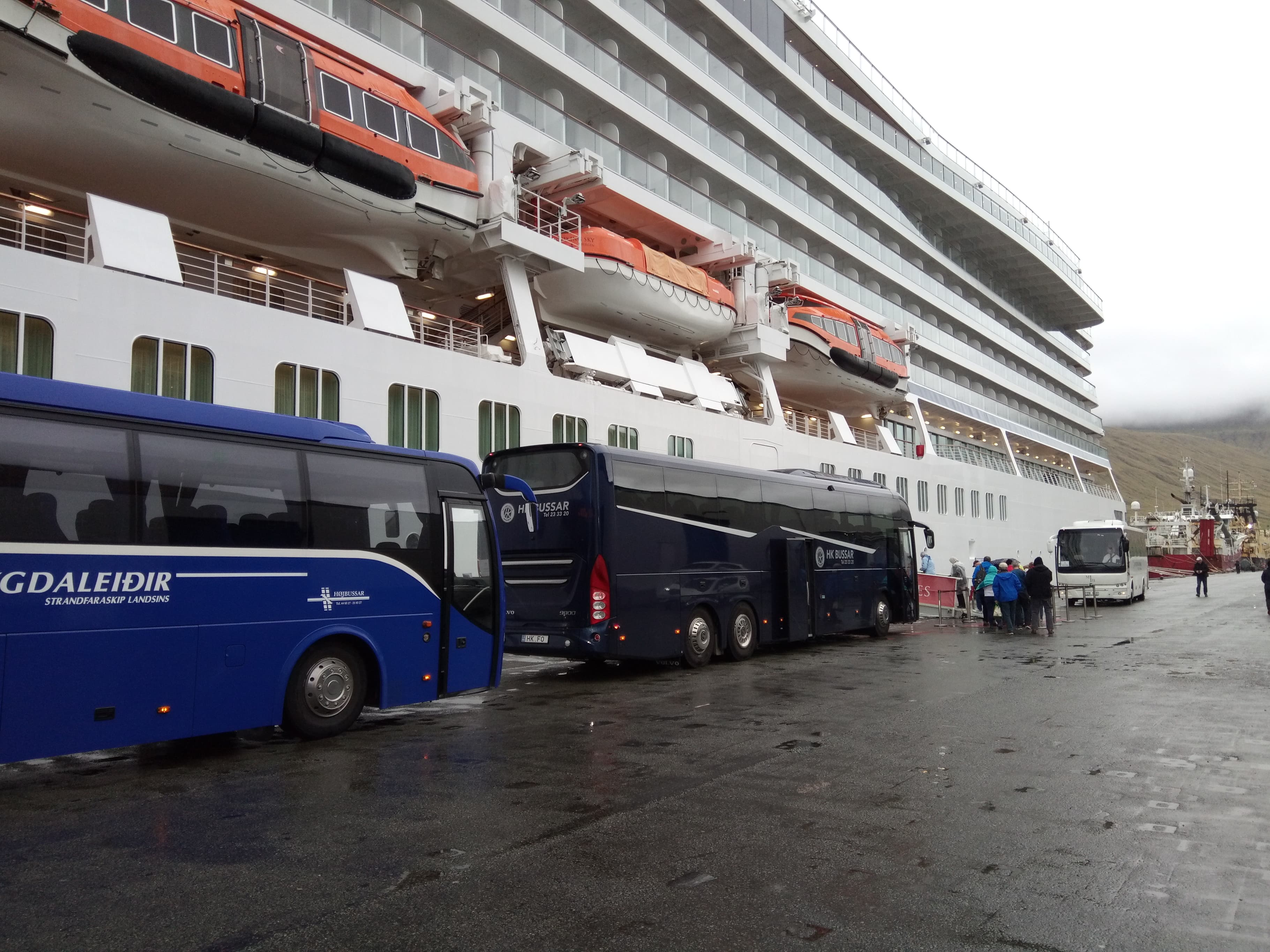 Í morgun legði stóra og kenda ferðamannaskipið Viking Sky at í Kollafirði. Tað hevur ligið har í allan dag, meðan ferðafólkini umborð hava verið runt Føroyar við bussi við ferðaleiðarum.