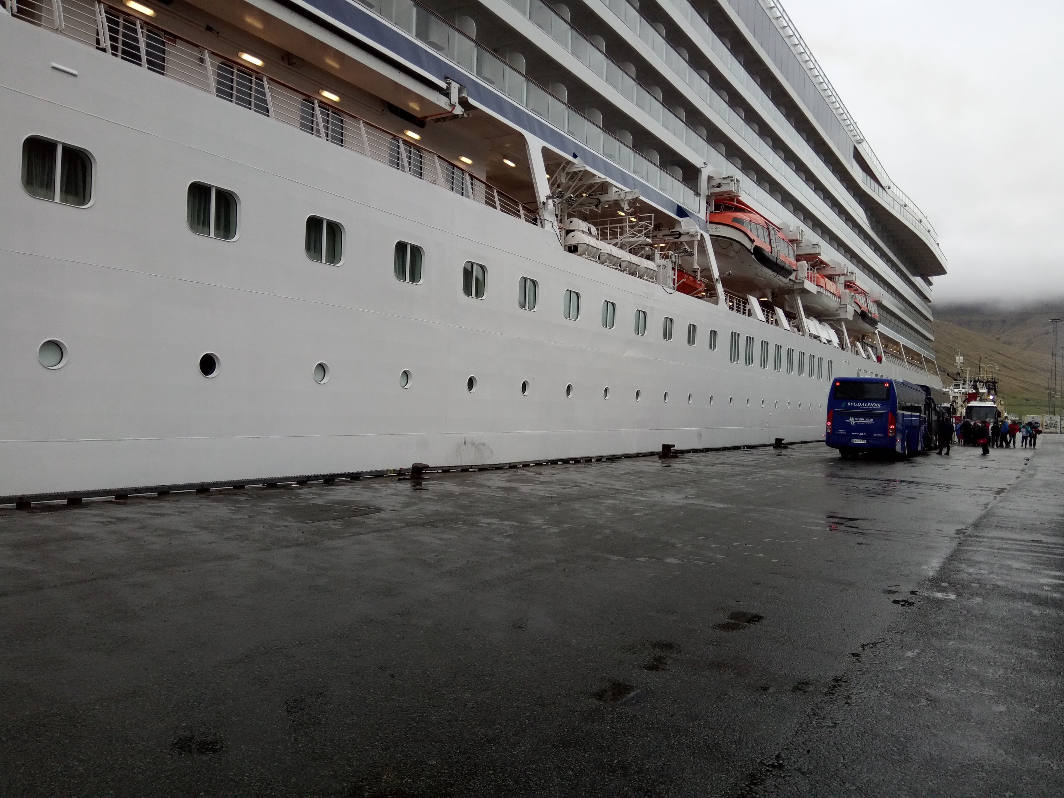 Flotta ferðamannaskipið loysir frá kai aftur nú klokkan 18 og setur kósina móti Seyðisfjørði í Íslandi. Um smáar tvær vikur kemur sama ferðamannaskip aftur hendan vegin, og tað ger tað eisini tvær ferðir í August.