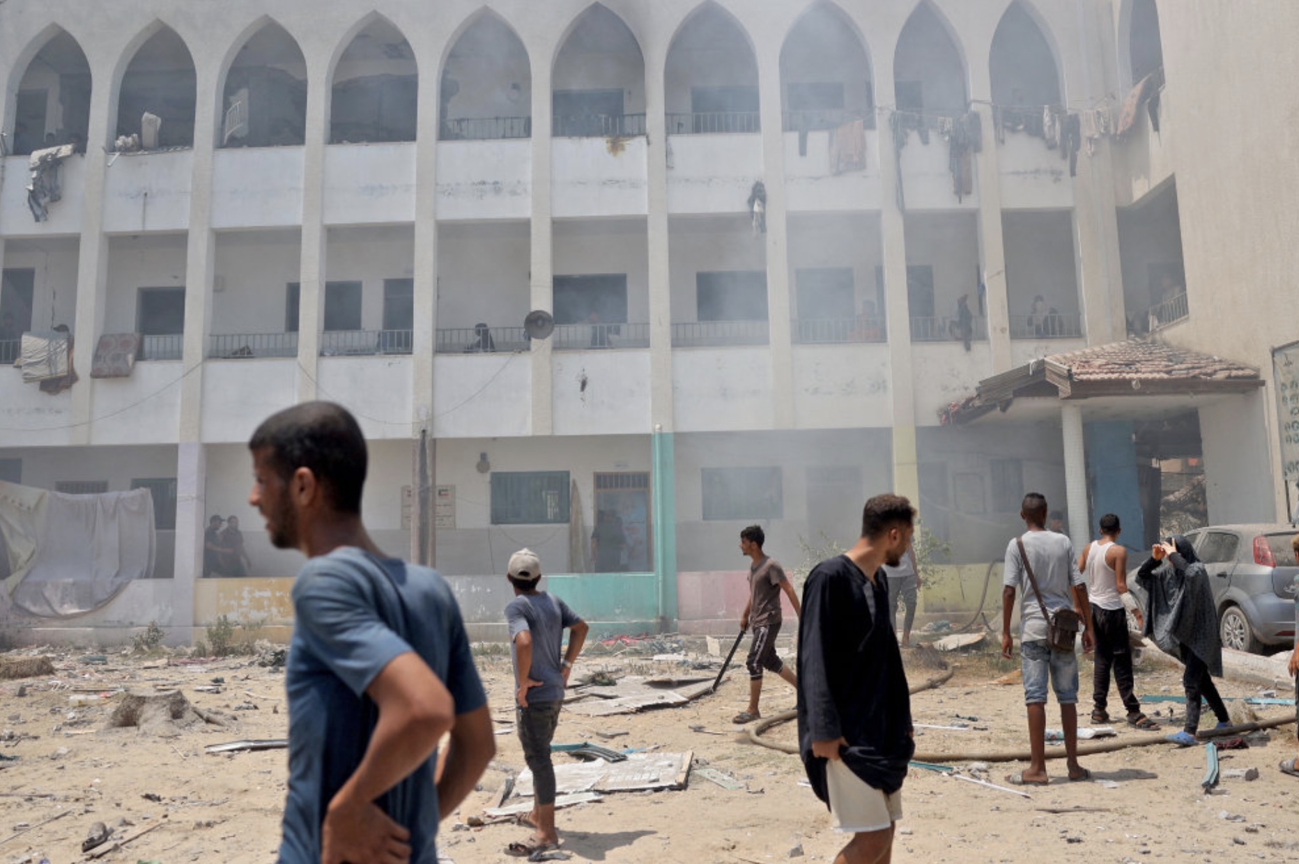Í minsta lagi 30 palestinarar eru deyðir í einum ísraelskum álopi á ein skúla í býnum Deir al-Balah miðskeiðis í Gazageiranum.