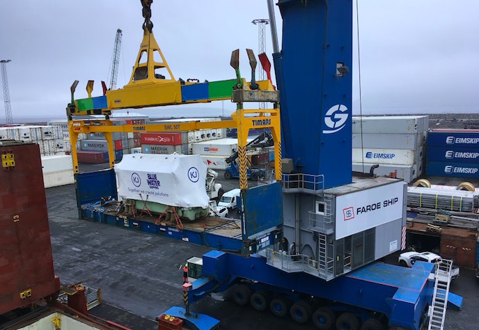 Jóannes Mørkøre hjá KJ greiðir frá, at Magnus Joensen, sum er føroyingur og starvast hjá Blue Water í Íslandi, samskipaði flutningin til Føroya, og sølumaðurin hjá KJ ásannar, at tað var ein rættilig avbjóðing at fáa blokkin koyrdan ígjøgnum New York.