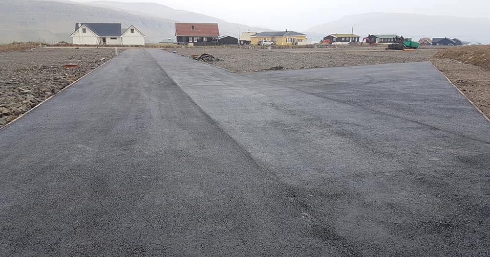 Nú páskirnar eru lagdar afturum, heldur asfaltarbeiðið fram, eins og farið verður í holt við at seta upp lyktapelar og montera ljós.