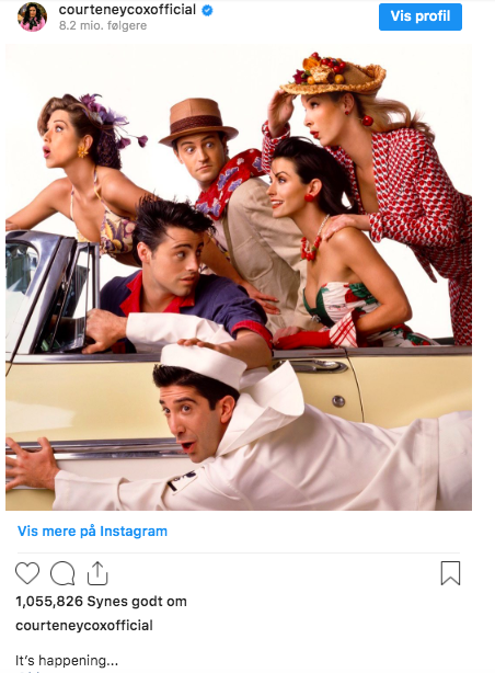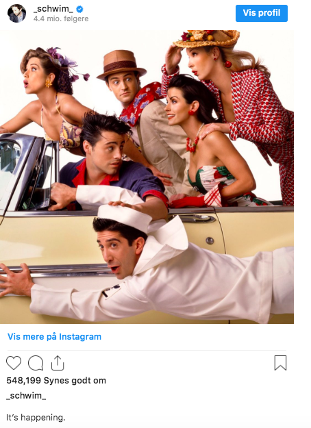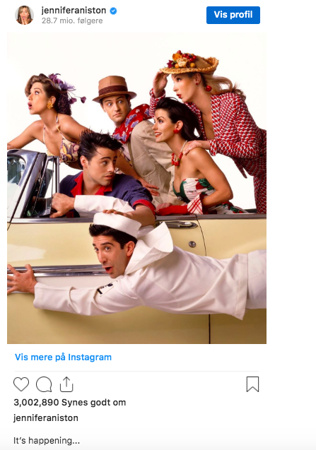 Síðan tá hava fjepparar bíðað við vón og biddað um, at teir góðu vinirnir fara at finna saman aftur. Leysatíðindi hava verið um ein nýggjan part síðan november - og nú verður tað so endiliga, at Monica, Chandler, Ross, Rachel, Joey og Phoebe finna saman aftur.