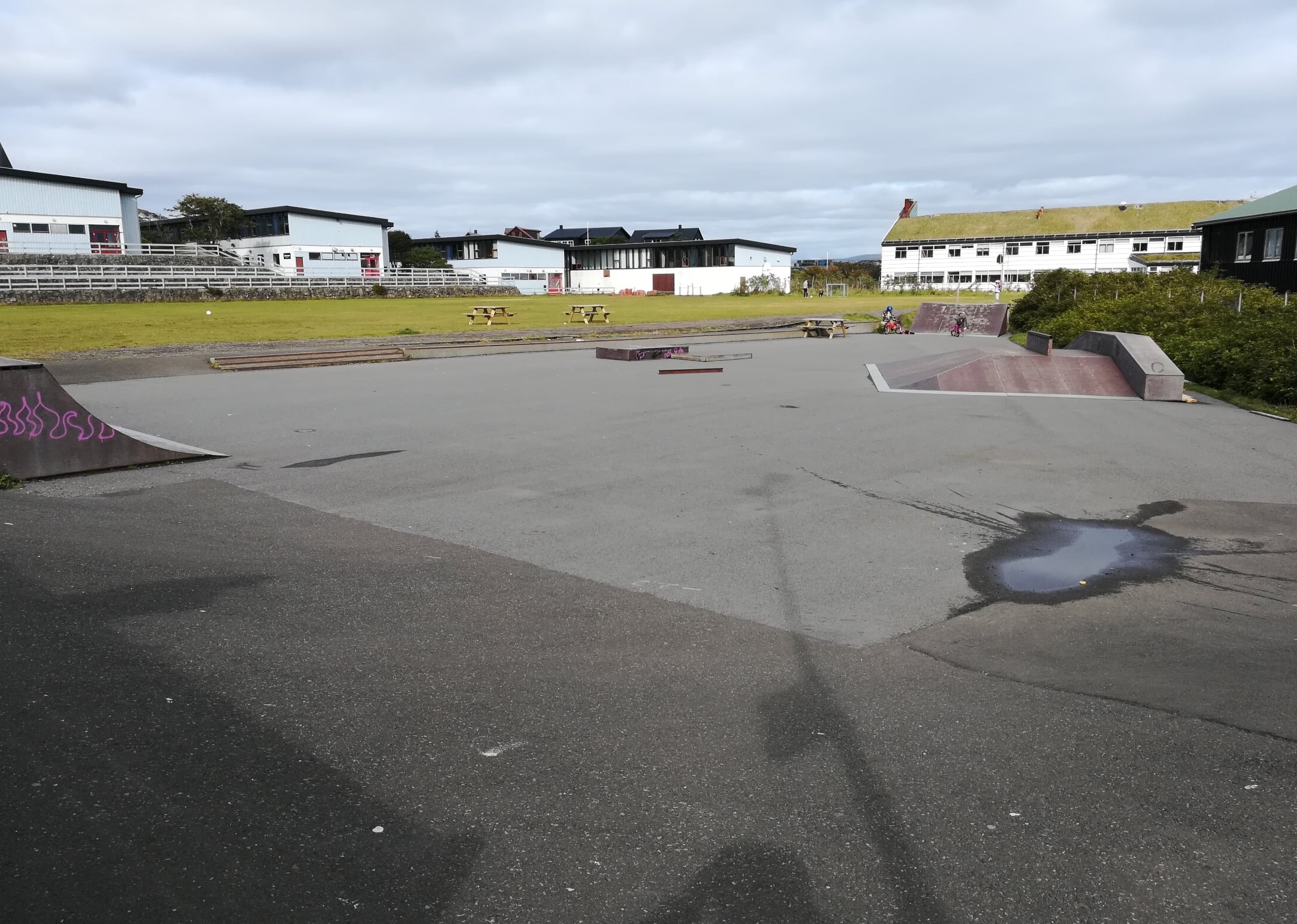 Óansæð hvat hendir við sjálvum bygninginum, so er økið á Frælsinum upplagt til børn og barnafamiljur. Stóra grasfløtan og slætta økið við rampum til rennifjøl og rulluskoytur eigur at verða útnytta til fulnar.