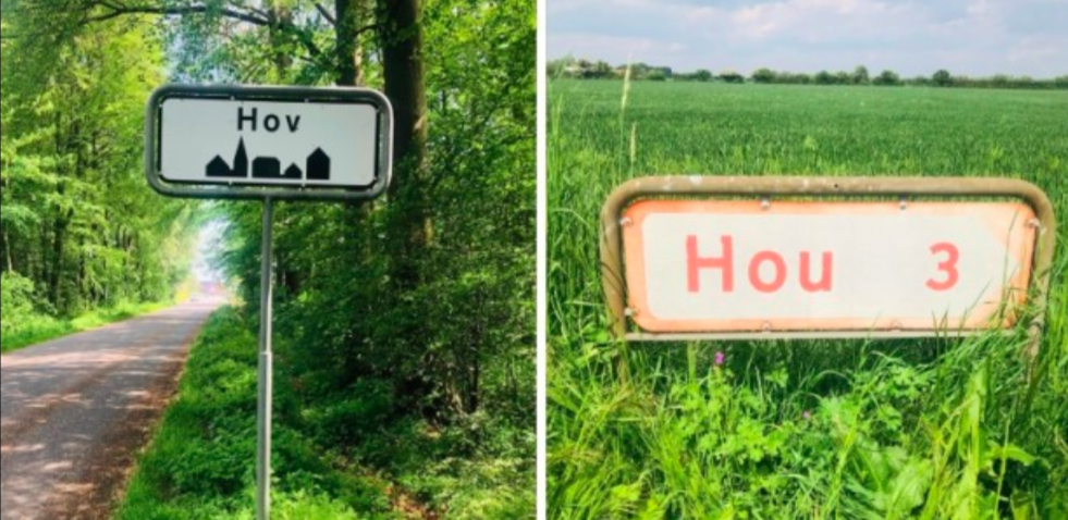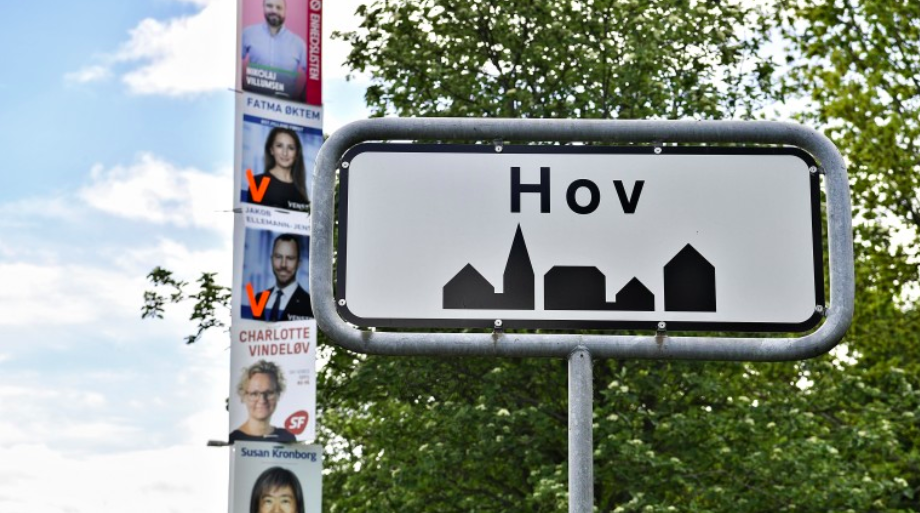Nú hava tey trætast um eitt líknandi mál í Danmark um ein lítlan bý, sum liggur í Odder Kommunu. Navnið verður vanliga stavað “Hov”, men á fleiri skeltum verður býurin stavaður “Hou”. Borgarar hava nú atkvøtt um býurin skal eita “Hou” ella “Hov”.