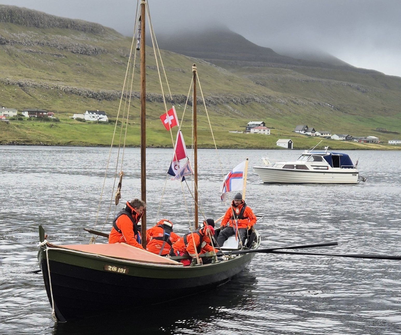 Seks fólk vóru umborð, og bjargingarátakið varð sett í gongd, eftir at neyðsignal varð sent frá bátinum.