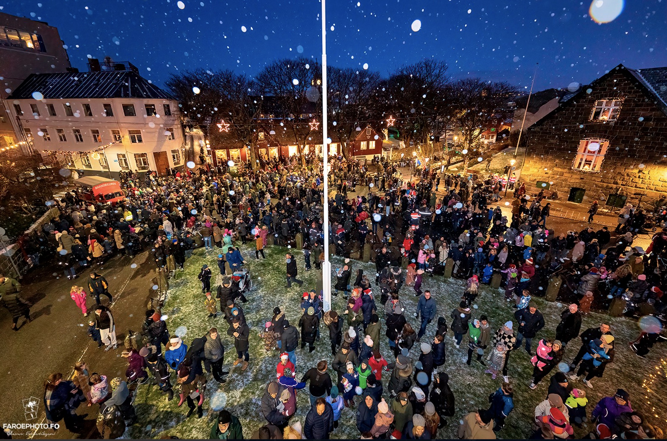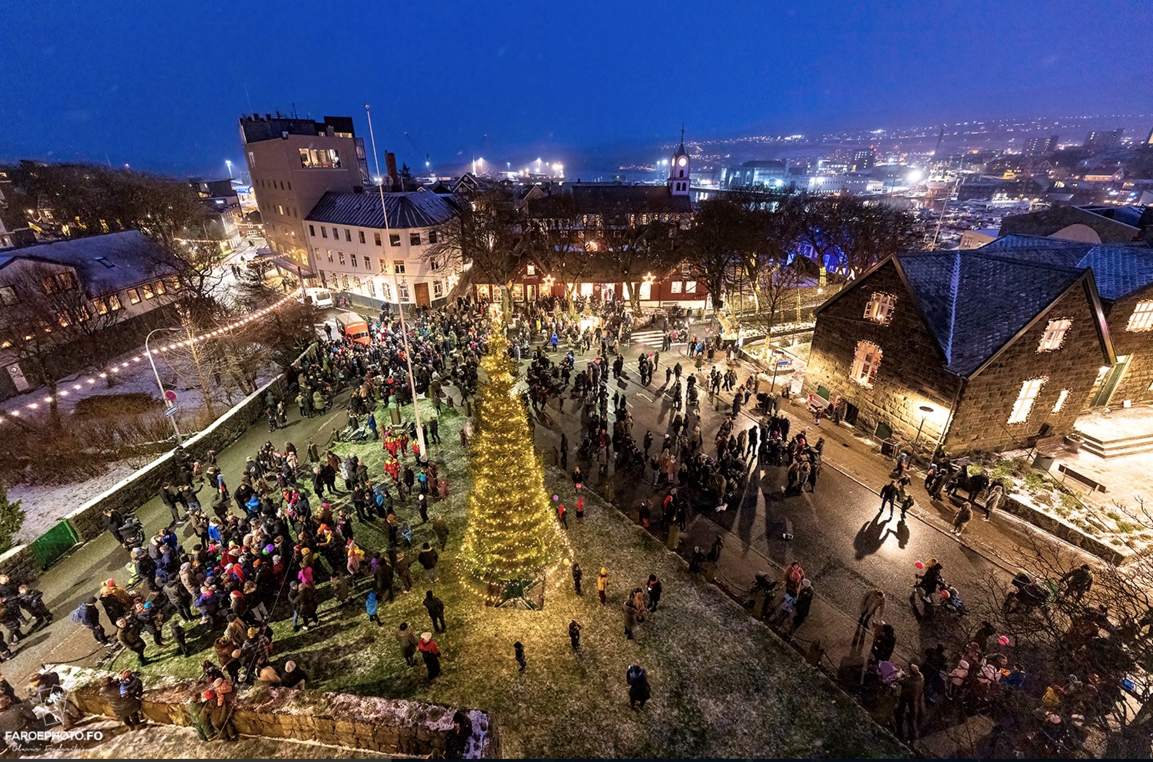 Leygardagin seinnapartin tendraði jólatræið á tinghúsvøllinum. Anne Mette Greve Klemensen legði fyri. Síðan bar Tórdis Lóa Tórhallsdóttir, býráðslimur í Reykjavík, heilsan úr Íslandi, og aftaná helt Heðin Mortensen, borgarstjóri, røðu.