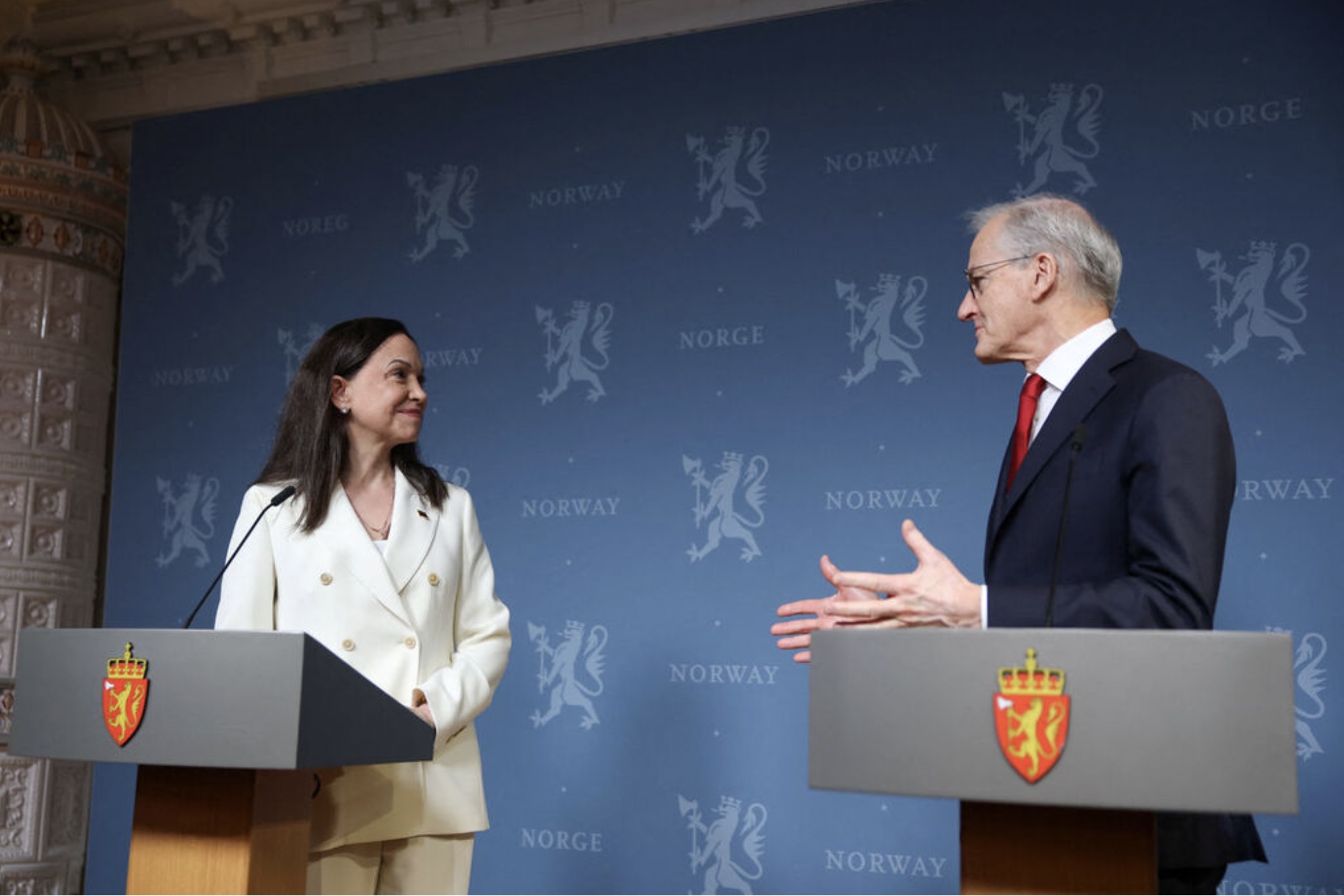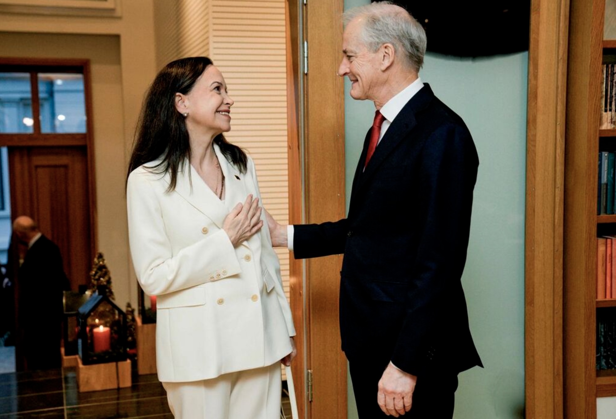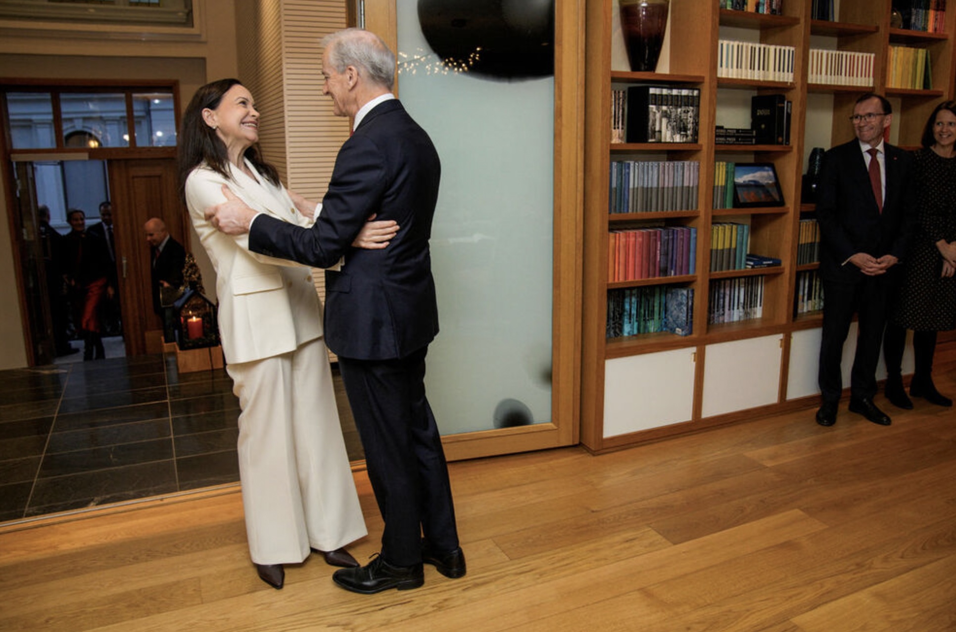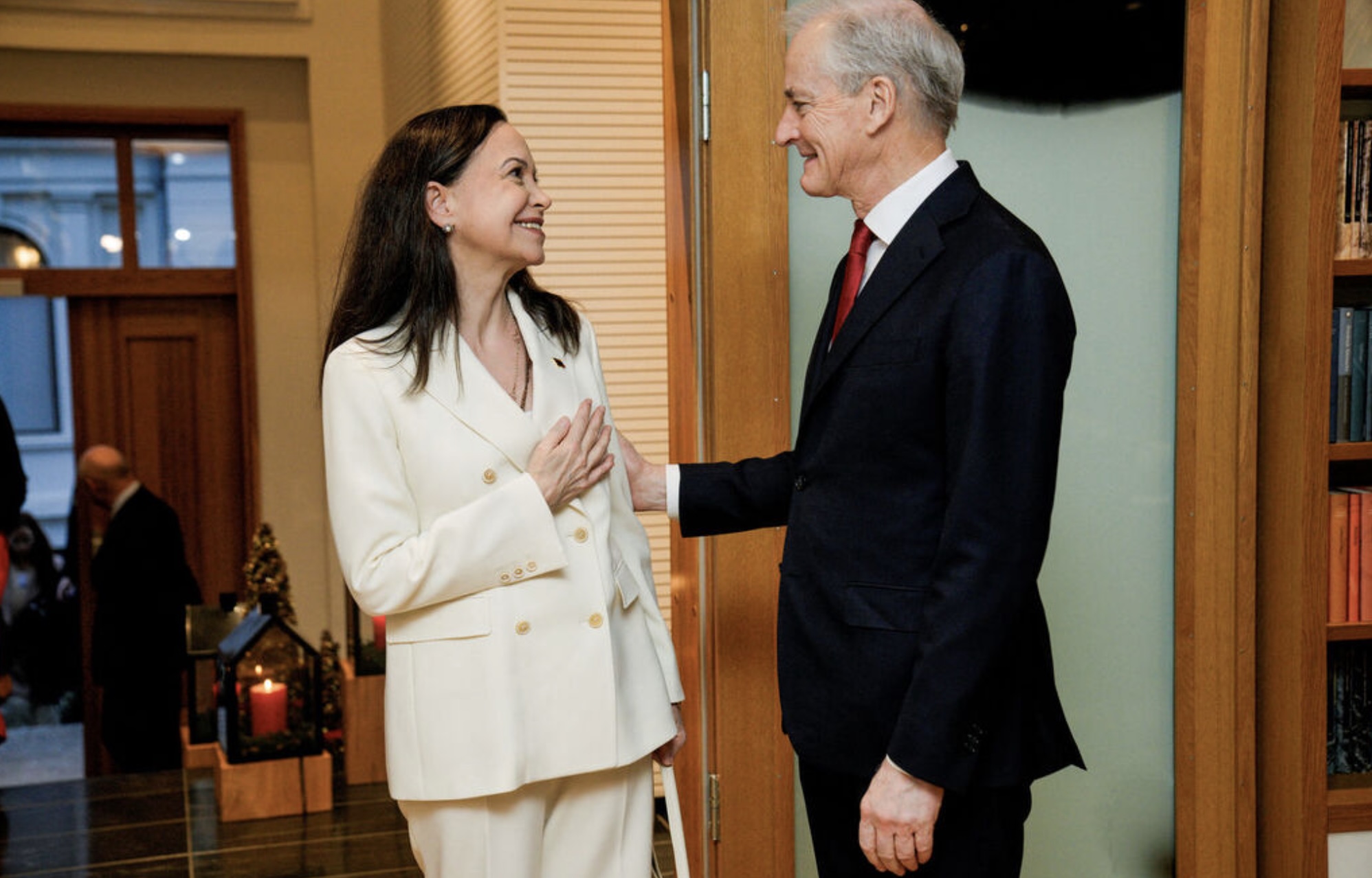 Machado fór ein loyniligan túr til Noregs og kom í gjárkvøldið fram í Oslo hóast ferðabann og hóttan frá venezuelansku stjórnini um, at hon fór at verða mett sum flóttafólk, um hon ferðaðist til norska høvuðsstaðin.