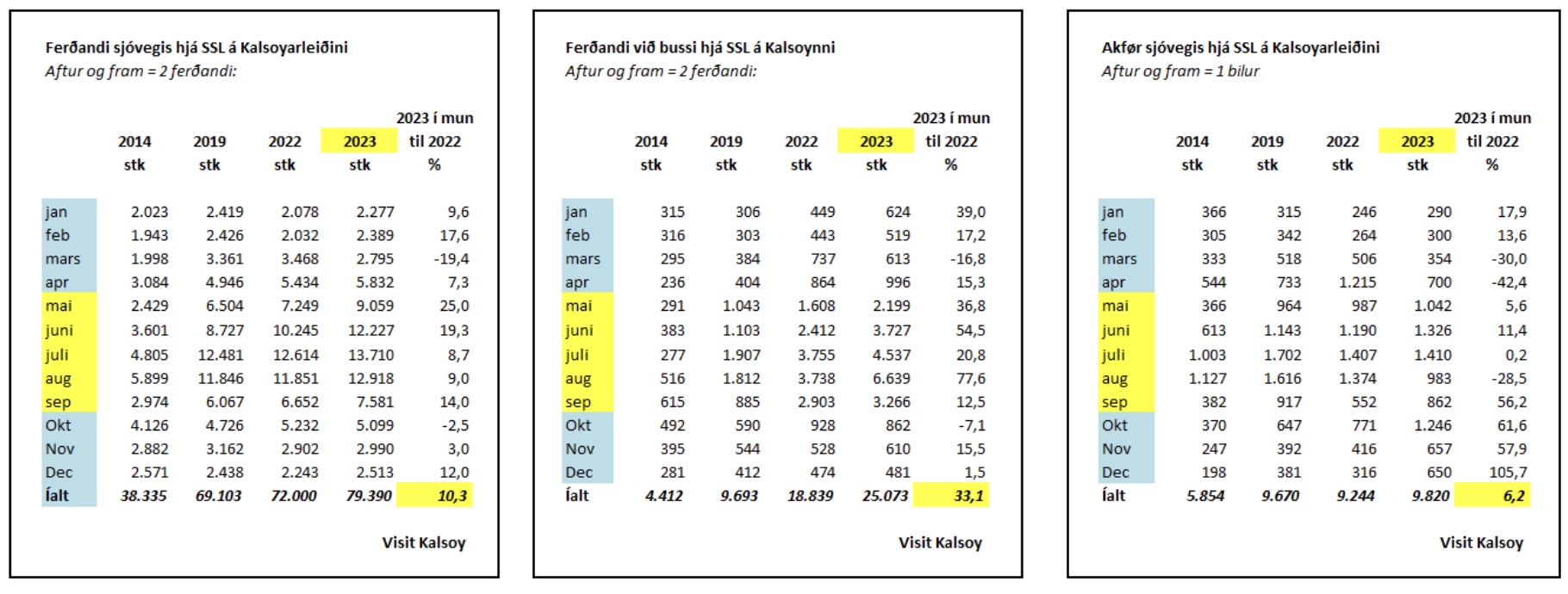 – Vit nýta høvið at takka fyri farna árið - og vóna, at SSL kann dagføra siglingina á Kalsoyarleiðini eftir dagsins tørvi við at sigla oftari í dagtímunum yvir alla vikuna, nú bæði SAM og Ternan/Teistin eru tøkir hjá SSL. Somuleiðis vóna vit, at bussleiðin á Kalsoynni verður betur tillagað tørvin, so ferðafólk kunnu líta á, at tey koma runt í oynni og uppliva eina jaliga vitjan, skrivar VisitKalsoy.