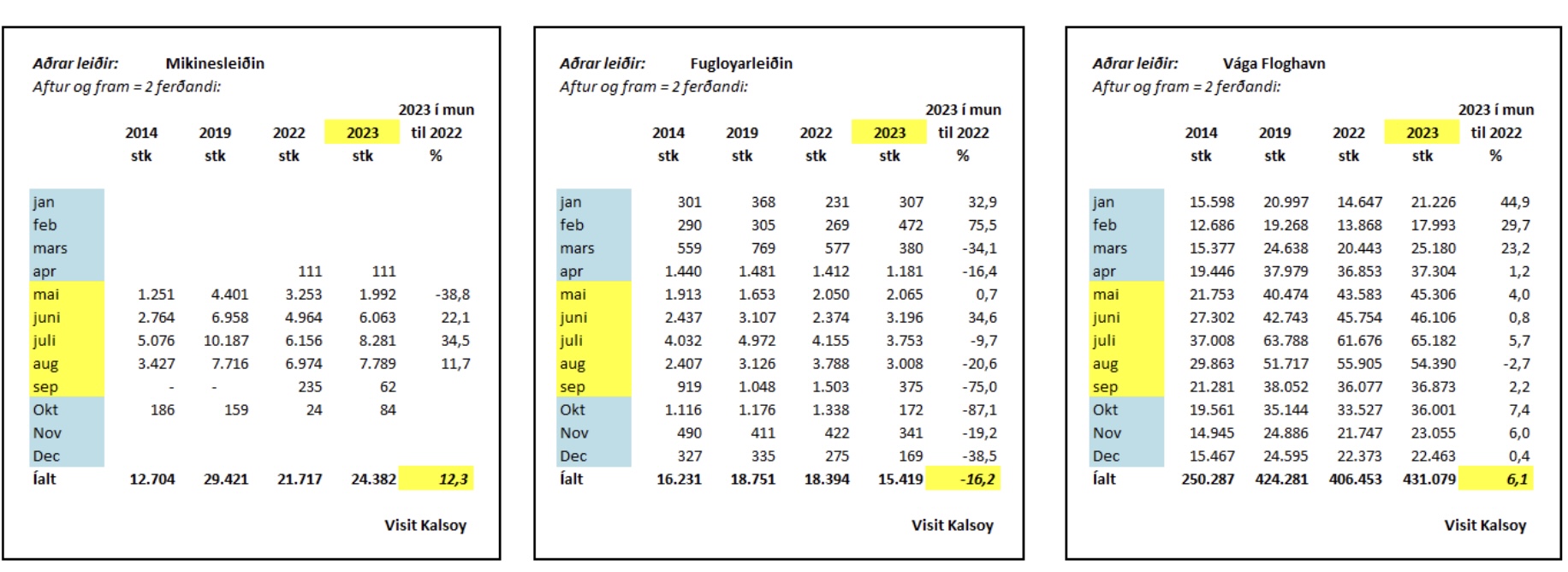 – Her síggja vit, at talið á vitjandi á Mikinesarleiðin er vaksandi aftur, at vitjandi á Fugloyarleiðini fækkaðu, meðan ferðafólkatalið um flogvøllin er vaksandi. Lat tað verða nevnt, at ongin sigling er á Mikinesarleiðini um veturin - og í fleiri dagar er ongin sigling vegna brim.