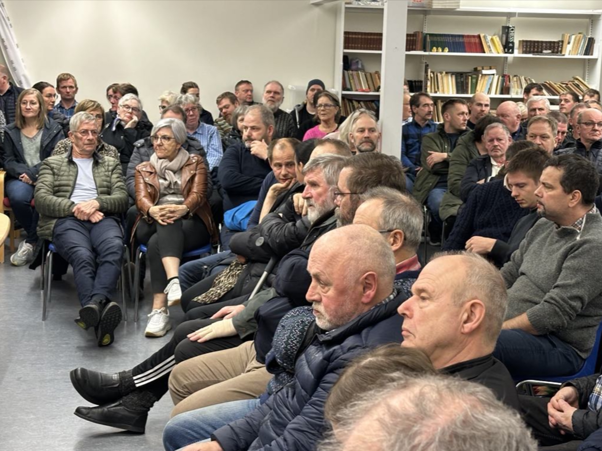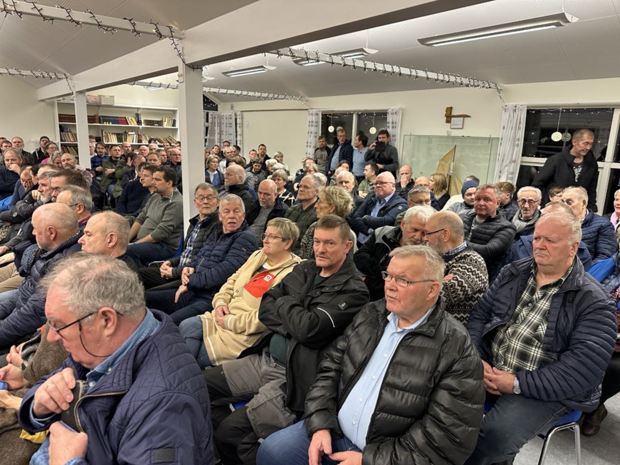 Tað er Sands kommuna sum skipar fyri fundinum, og vit frætta av Sandi, at eini 130 fólk eru møtt á fundinum, sum er um vegaføringina í Sands kommunu í samband við tunnilin.