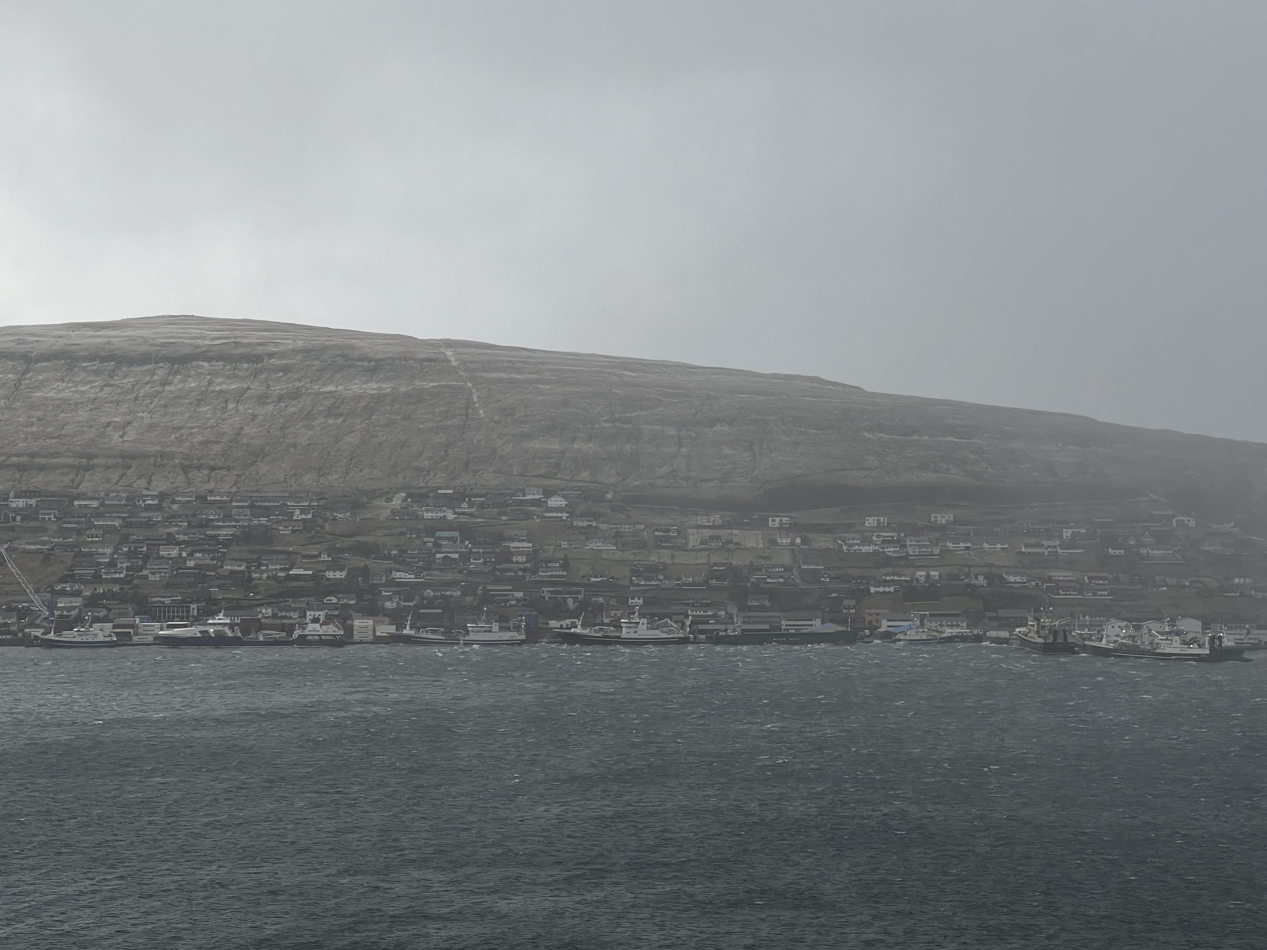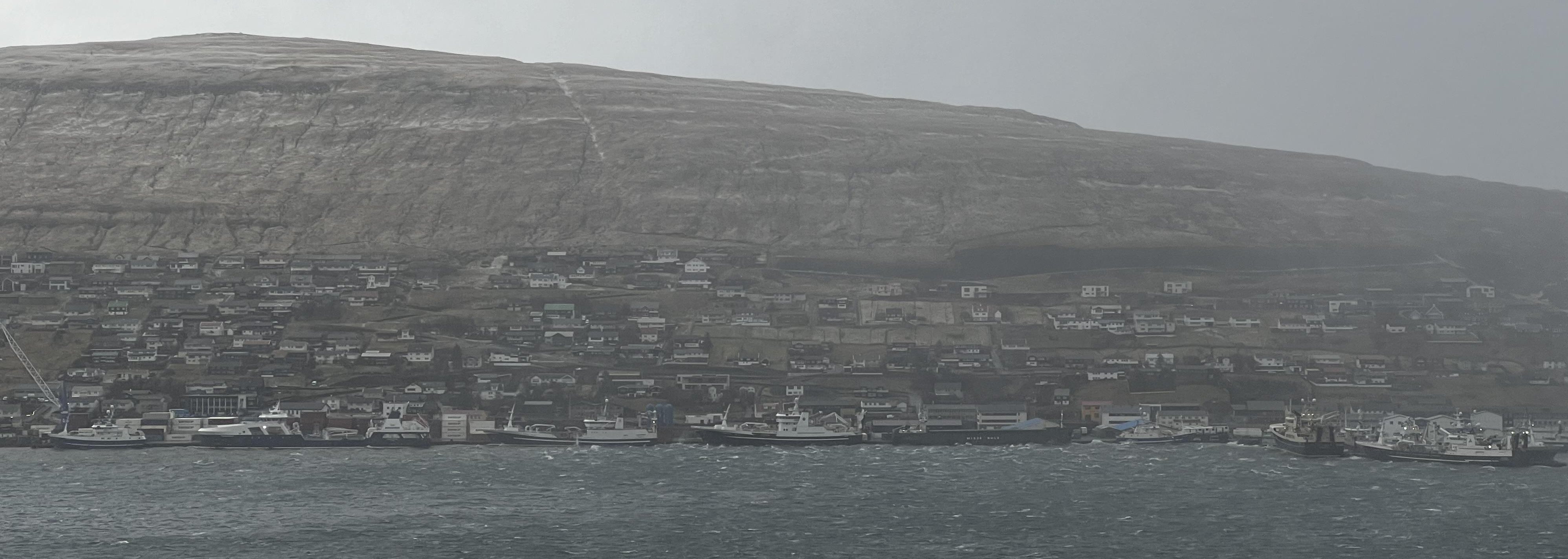 Somikið nógv skip eru komin at leita sær lívd at kaiin er full. Millum teir sum liggja eru fiskibátanir, sum allir eru komnir inn.