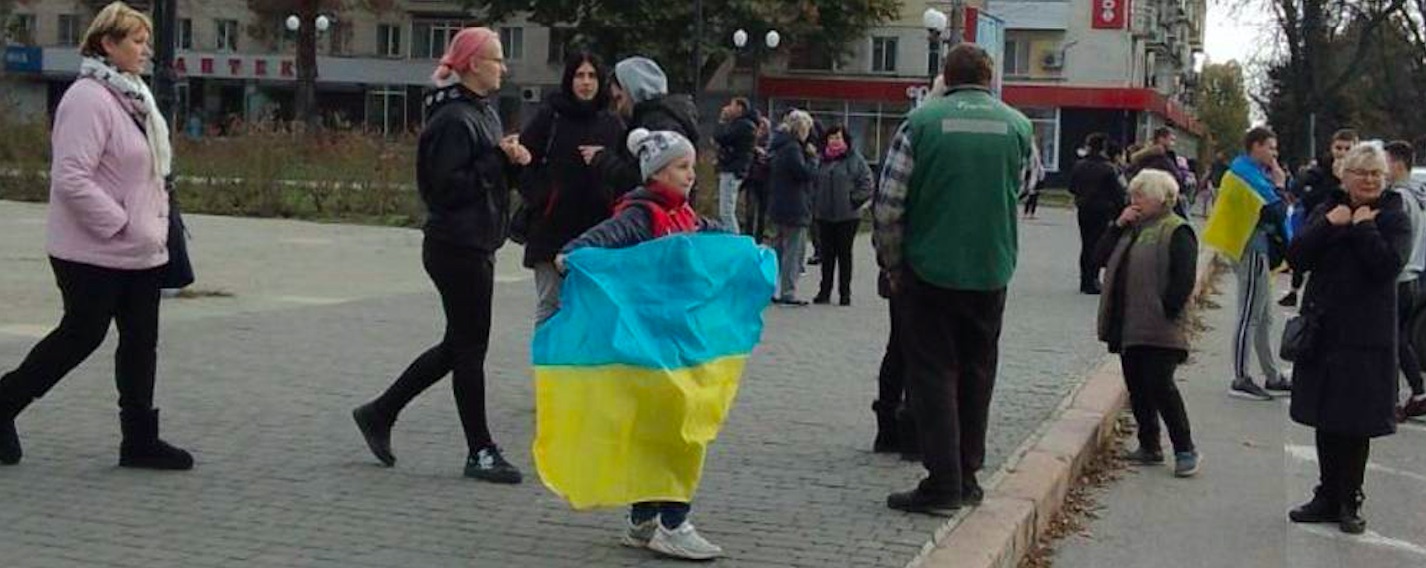 NRK veit seinnapartin at siga, at fólk nú eru farin út á gøtuna í miðbýnum í Kherson við ukrainskum fløggum, og gleðin er stór.