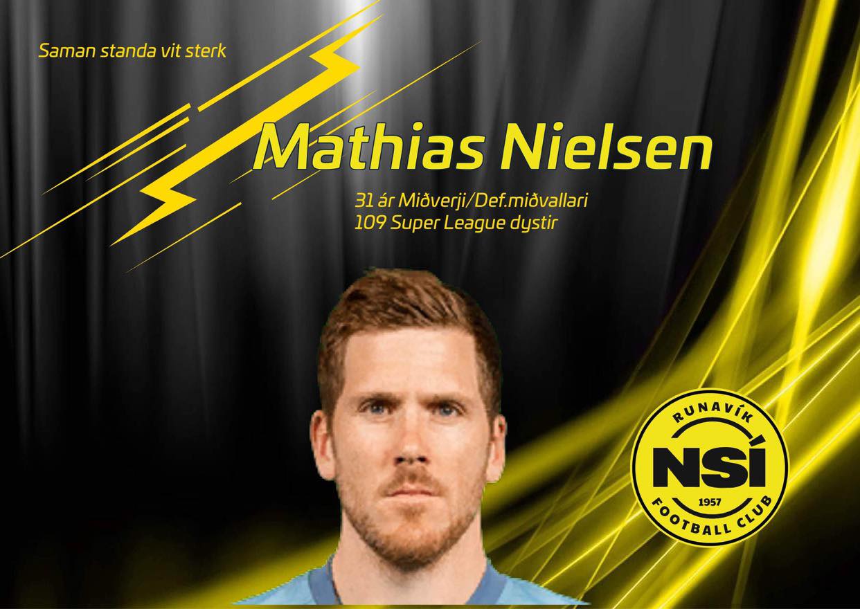 Mathias Nielsen er 31 ára gamal, og hevur eina rúgvu av royndum úr donskum fótbólti, nevnast kann at hann hevur spælt fyri FC Nordsjælland, Viborg, AC Horsens, Randers og nú til seinast í HB Køge. Tí fegnast vit stórliga um at hava fingið ein sera royndan leikara inn í felagið, ein mann við royndum, sum kann hjálpa og stuðla okkara ungu monnum víðari í teirra útvikling.