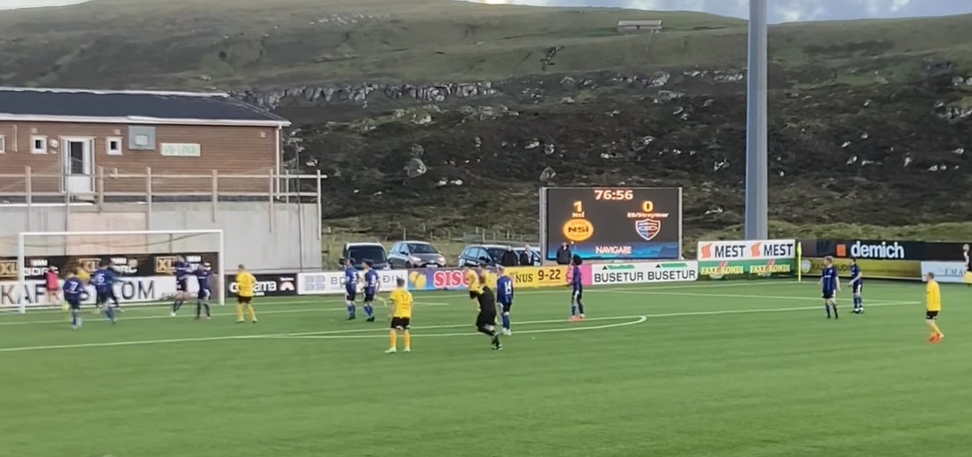 Átta minuttir seinni átti Josva Agnarsson uppleggið, tá ið NSÍ økti um leiðsluna. Hann sendi við fríparki úr høgru bóltin til handara stólpa, har Pól Jóhannus Justinussen úr stuttari fjarstøðu setti bóltin í málið.