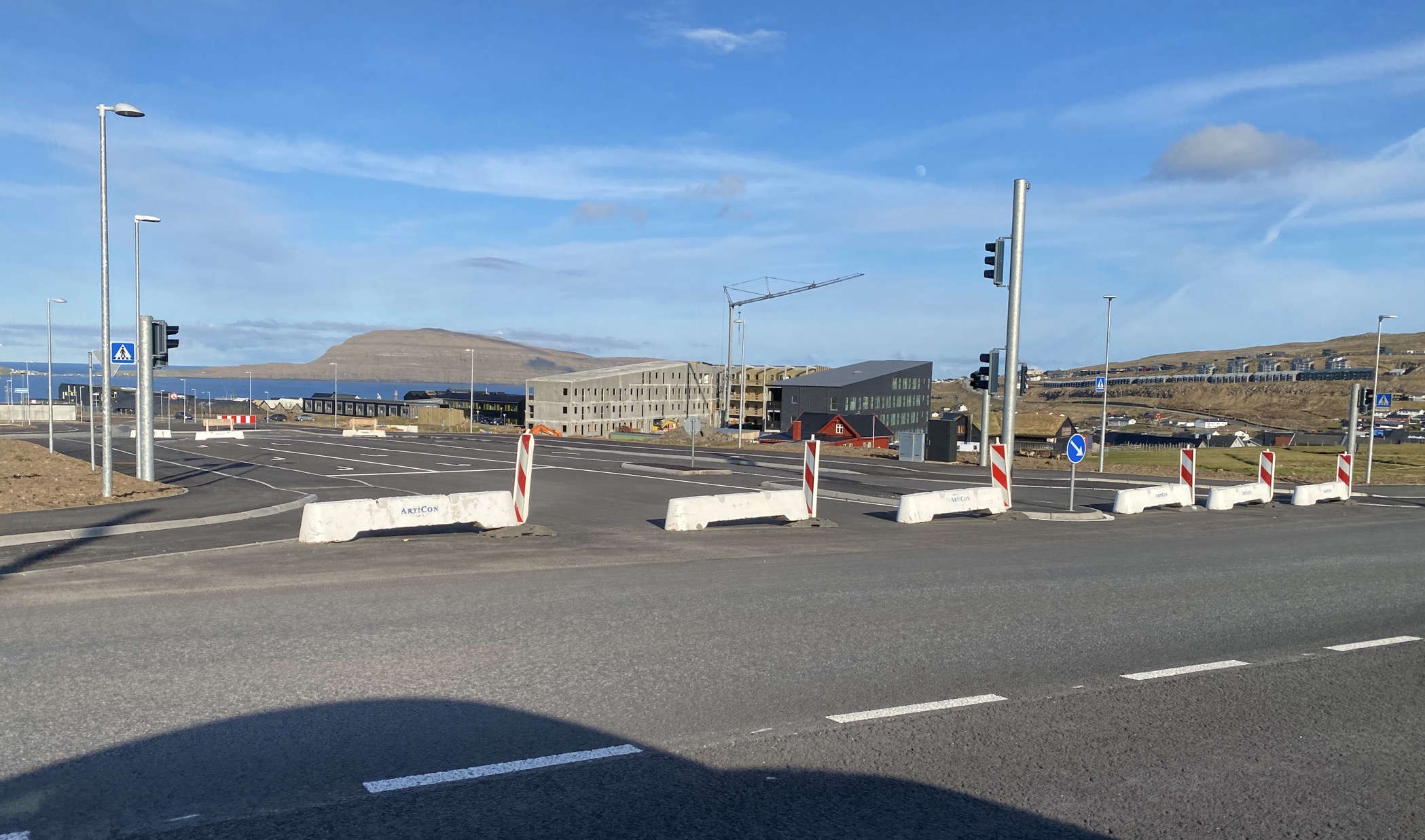 Hóast tað nú eru fleiri mánaðir síðani, at arbeiðið á vegamótinum Hans Andriasargøta/Marknagilsvegur er liðugt, so er vegurin enn ikki latin upp, og tí gongur ferðslan frá Skúlanum á Fløtum eftir Janusargøtu og fløkist upp í ferðsluna frá Glasi. Tað hevur havt avbjóðingar við sær.