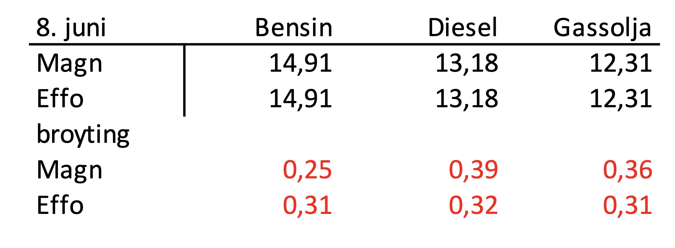 Magni hevur hækkað prísin á diesel við 39 oyru fyri liturin og Effo við 32 orum.