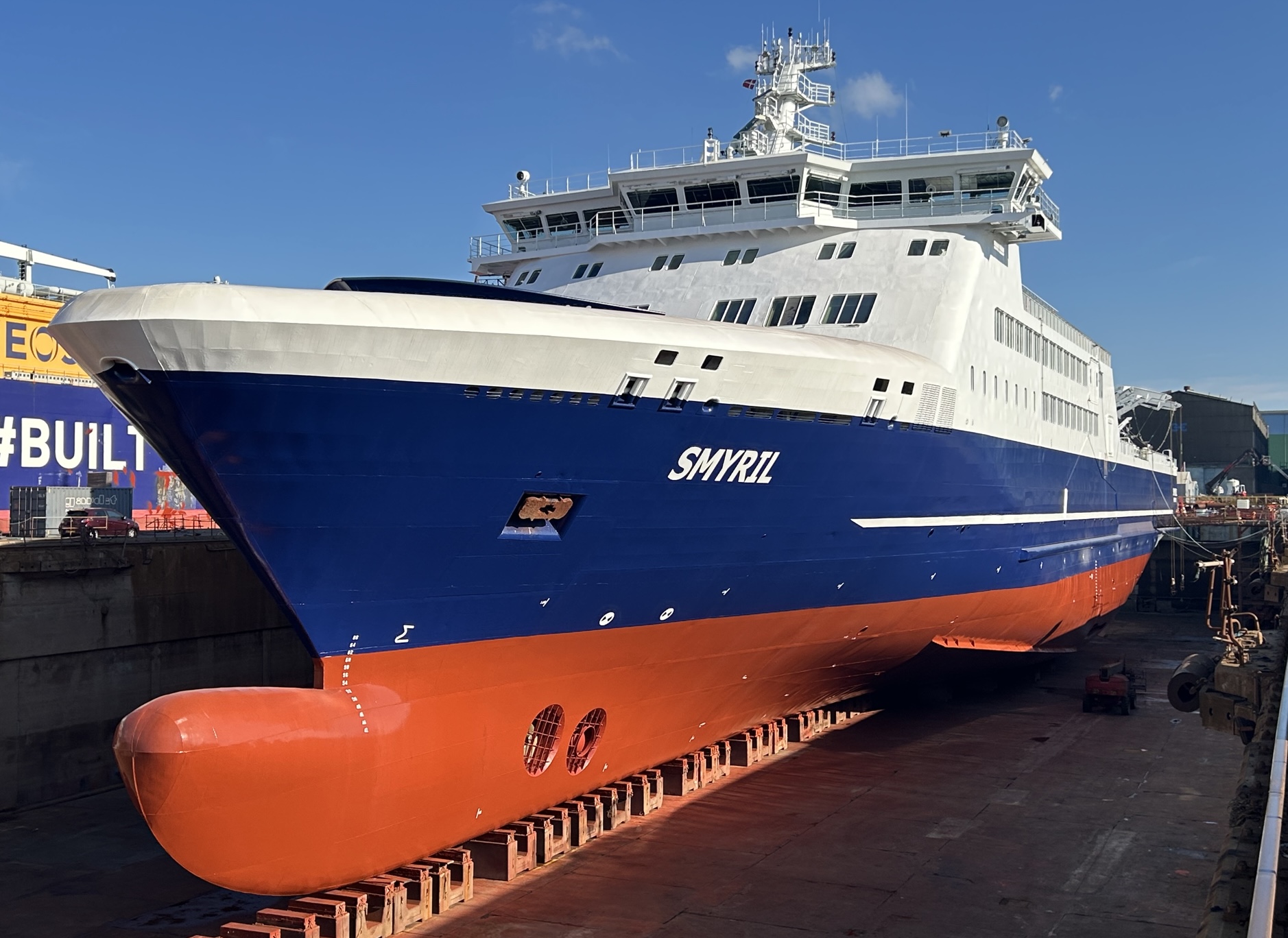 Smyril klárur at fara úr dokkini í oktober. Mikið rok stóðst av avloysaraskipinum hjá Smyrli, griksku ferjuni Galaxy