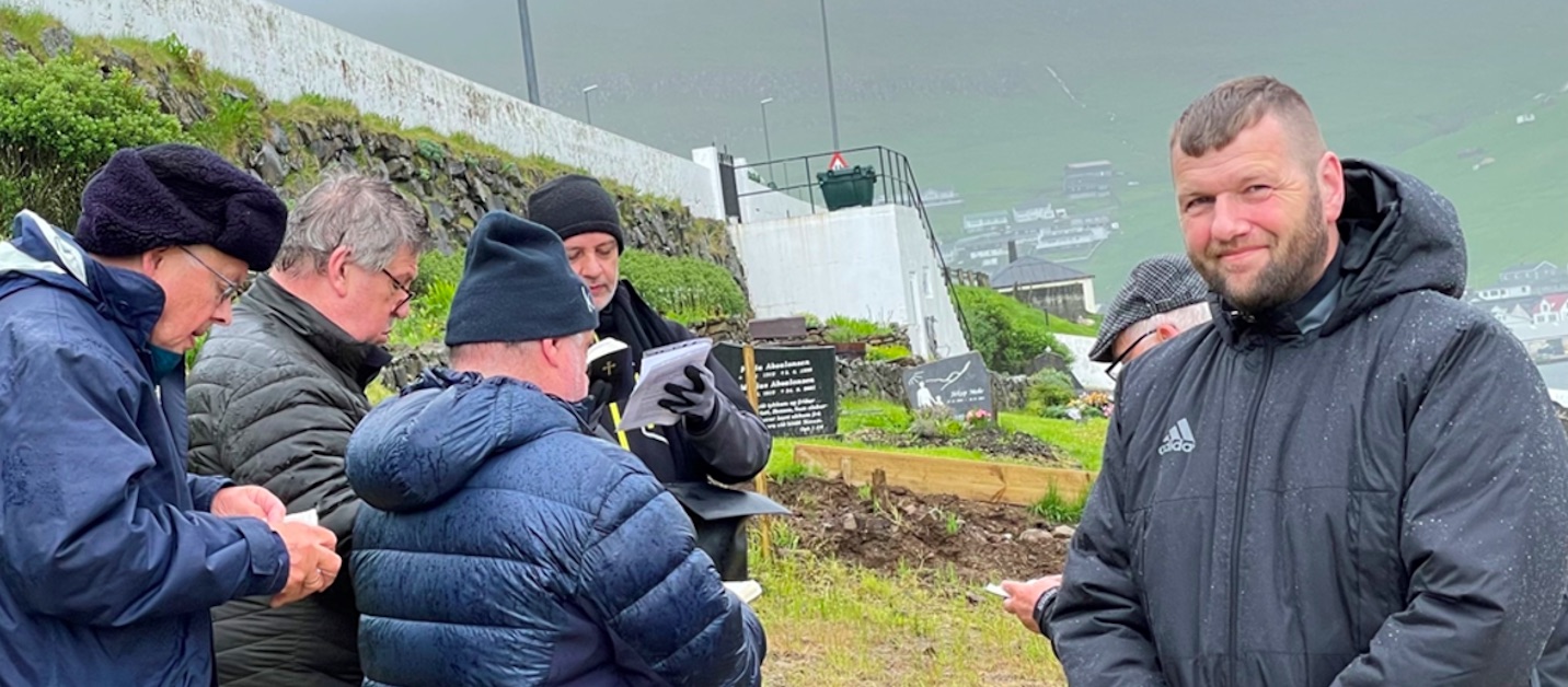 Eftir túrarnar runt um kirkjugarðin, læs prestur upp nøkur ørindi úr Bíbliuni.