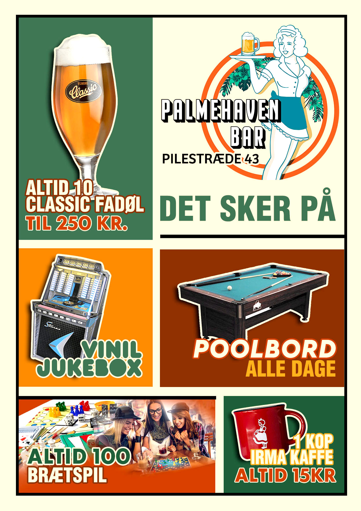Annars er ætlanin at skipa fyri fleiri tiltøkum gjøgnum árið – eitt nú hugsa vit at javnan skipa fyri spurnarkappingum, teknitiltøkum og fyrilestrum. Eisini hava vit poolborð, jukeboks við vinylplátum og yvir hundrað borðspøl. Umframt øl og rúsløgur hava vit eisini eitt serstakt drinkskort við breiðum úrvali av kokkteylum og blandingum.