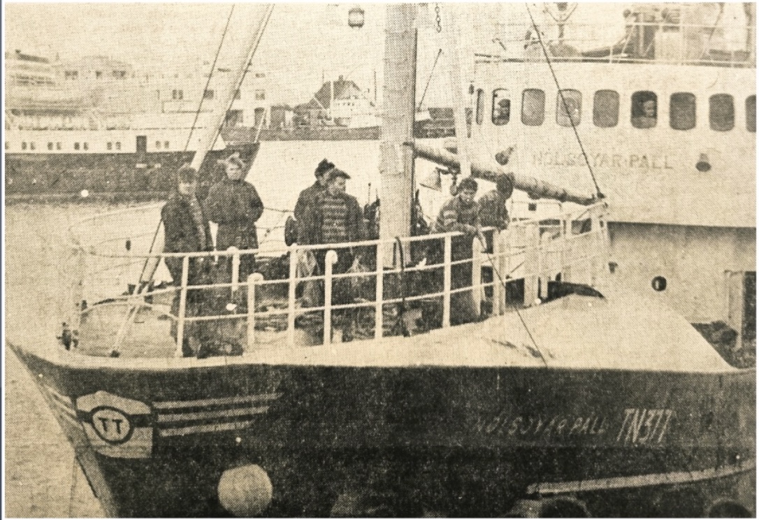 Skipið legði seg langt, og fýra mans fóru í ein bjargingarbát. Teir komu ikki afturíaftur, hóast leitað var í fleiri dagar.