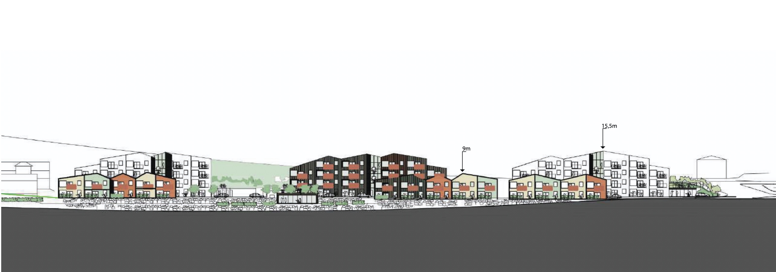 Sambært byggisamtyktini kann byggjast báðu megin nýggja bústaðarvegin, hægri bygnigar oman fyri vegin og lægri bygningar niðanfyri vegin.
