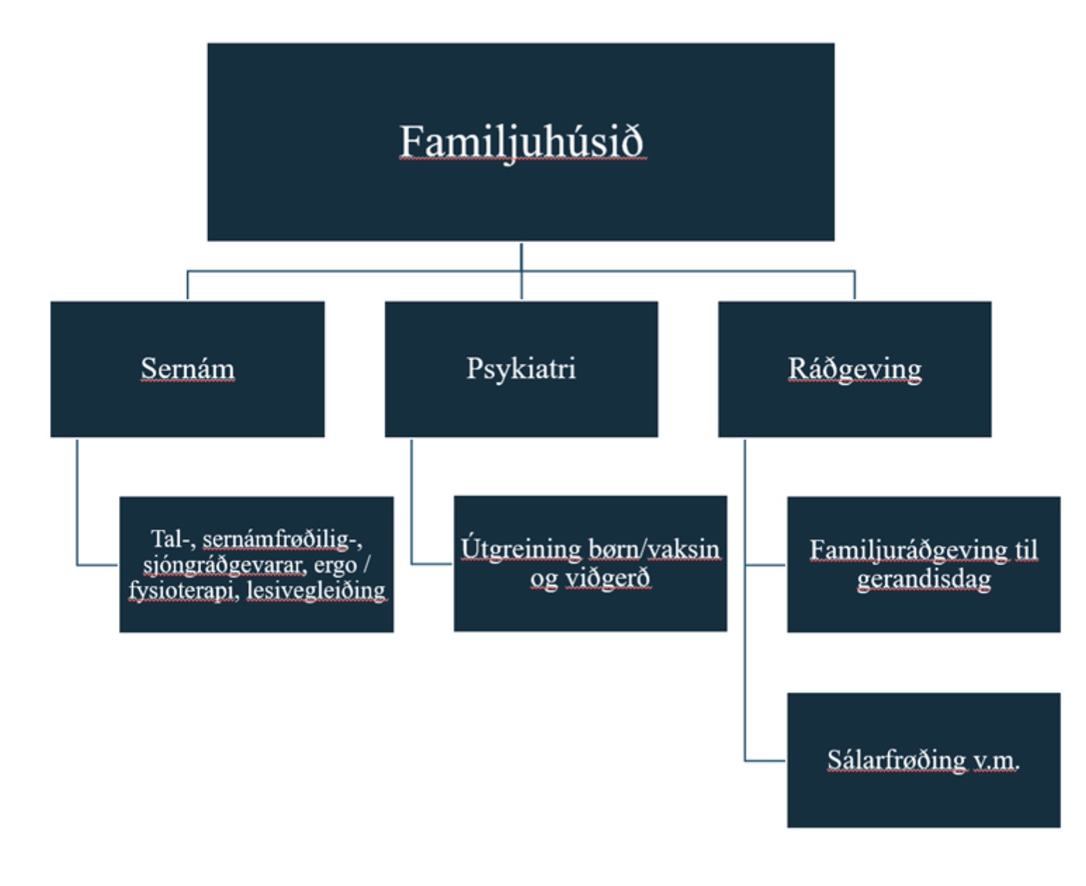 Neyðugt er við einari skipan, sum er smidligari, effektivari og megnar betur at lofta børnunum. Tað skal gerast greitt, hvør hevur ábyrgdina av hvørjum øki, og yvirlapp millum skipanir skal burtur. Í staðin skal talan verða um eitt styrkt tvørfakligt samstarv.