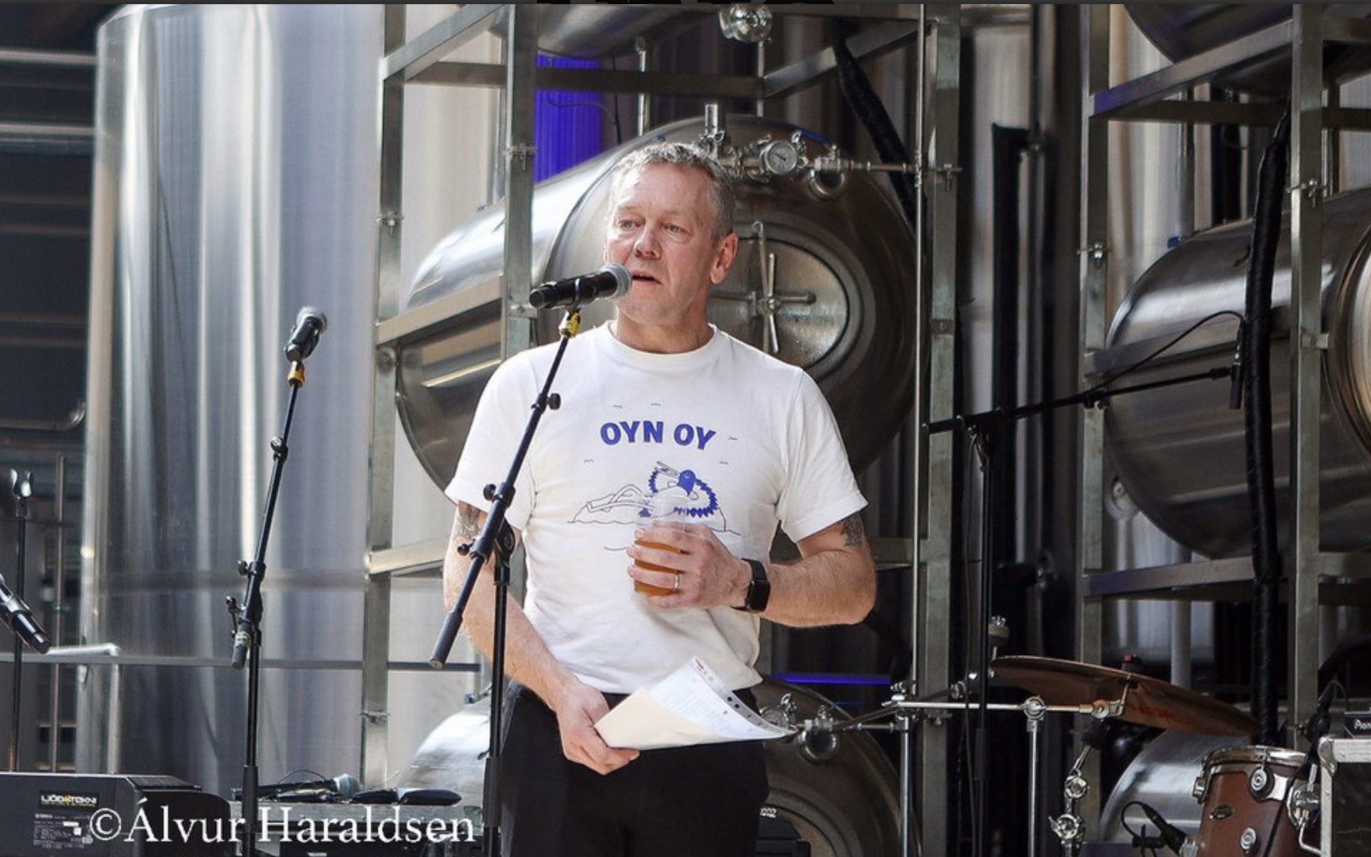 – Tá veðrið er sum í dag, so siga vit at tað er ølveður, helt hann skemtiliga fyri, áðrenn hann skálaði við fyrstu ølini.