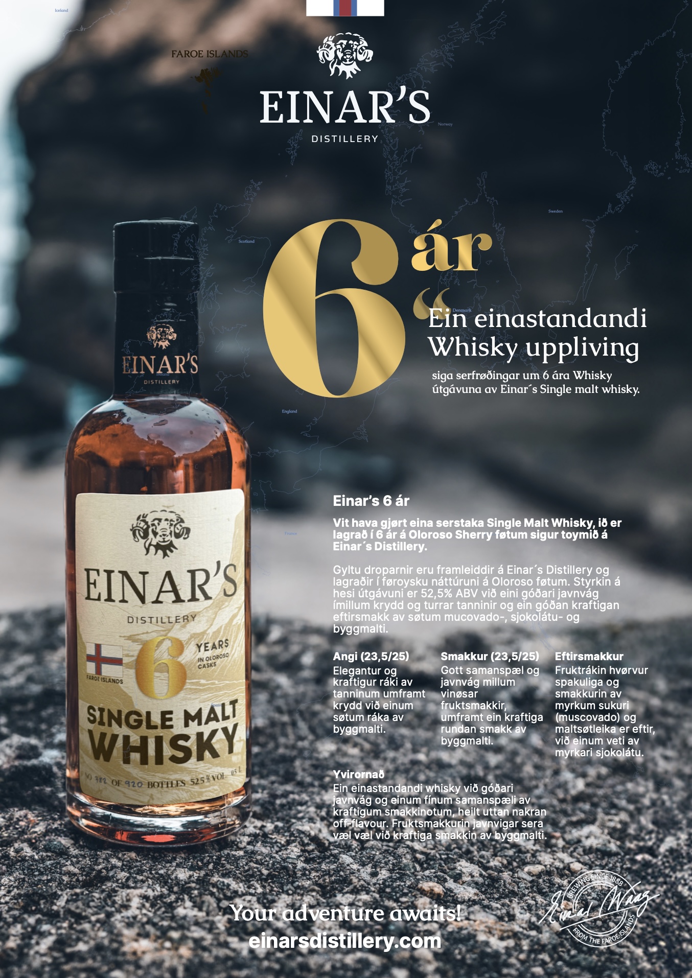 'Ein einastandandi Whisky uppliving - siga serfrøðingar um 6 ára Whisky útgávuna av Einar's Single malt whisky'