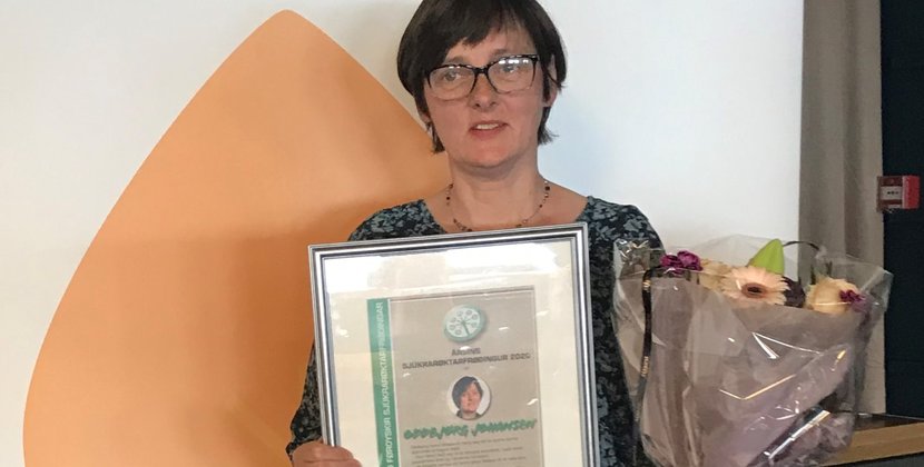 Hetta stendur skrivað á heimasíðuni hjá felagnum Føroyskir Sjúkrarøktarfrøðingar, har tað eisini verður ynskt Oddbjørg tillukku við heiðrinum.