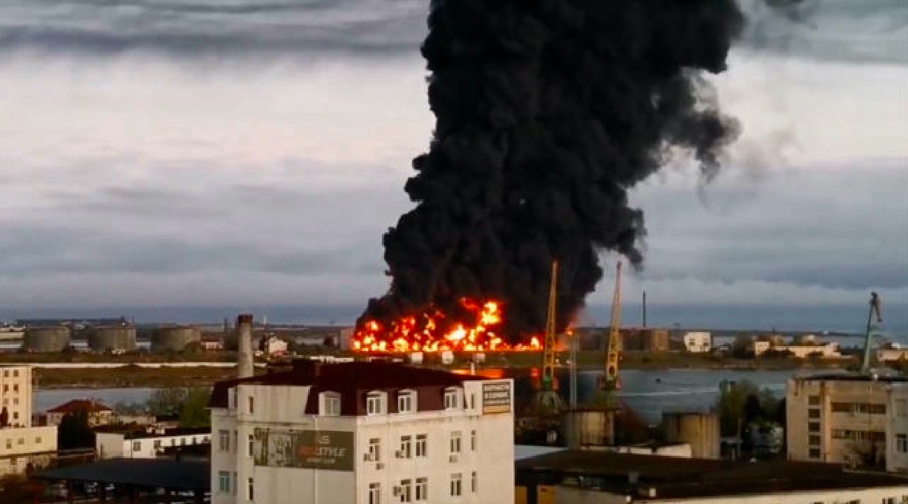 Í morgun er eldur í einum oljutanga í havnabýnum, Sevastopol á Krim-hálvoynni í Svartahavinum.