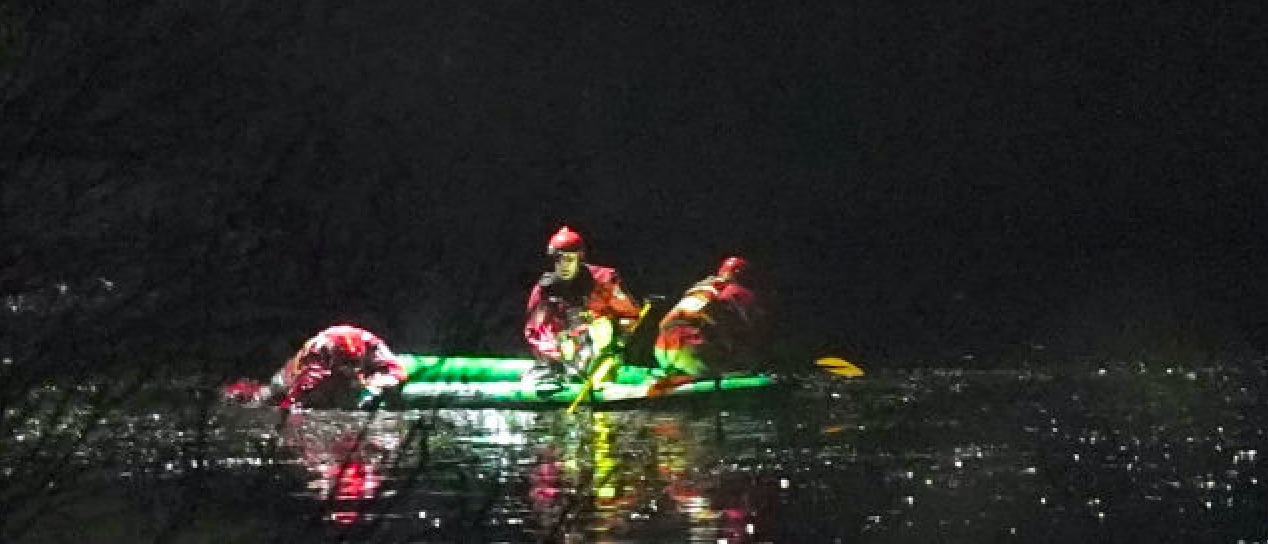 Myndir, sum eru tiknar við tjørnina, vísa, at bjargingarfólk leita eftir fólki.