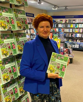 Tá fer Anette Sonne, sum saman við Búgva Róin gav út Urtagarðsbókina, at planta og prýða várligar uttandurakrukkur í blómuhandlinum.