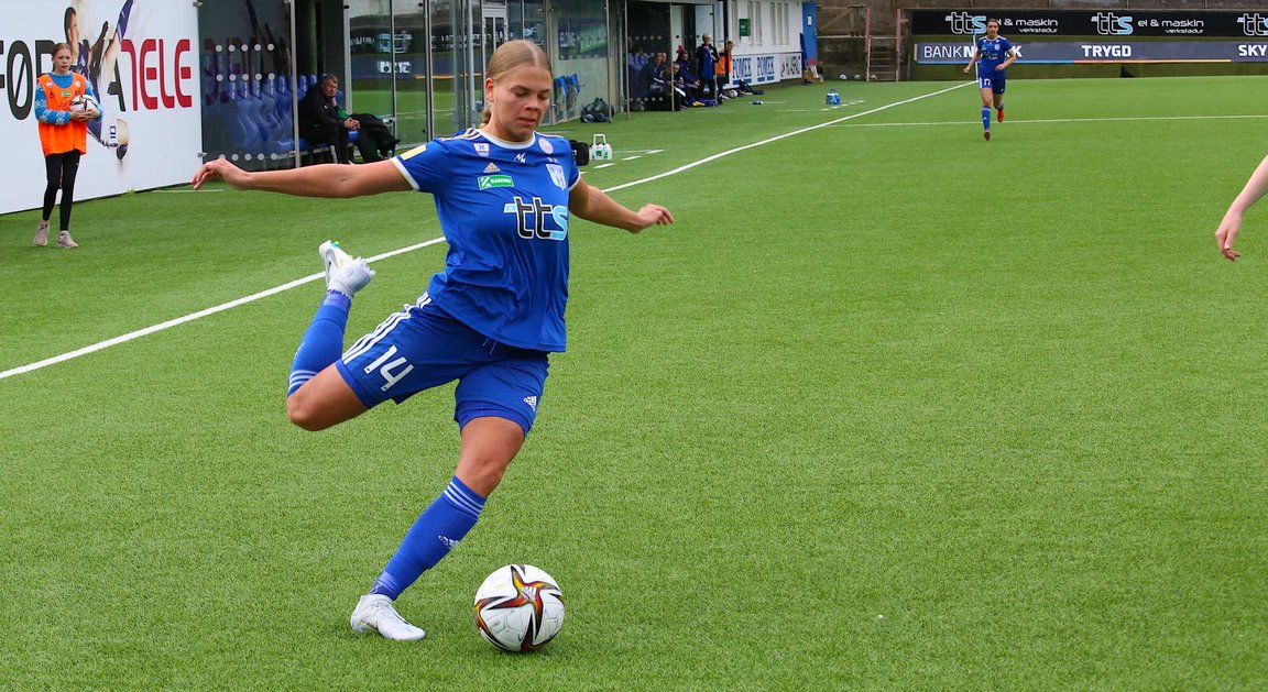 Tóra Mohr (myndin) legði KÍ á odda átta minuttir undan steðginum. Seinni hálvleikur var bara fýra minuttir gamal, tá Sólja Ernstsdóttir økti til 2-0. Sambært dystir.fo hevði KÍ fimm málroyndir innanfyri málrammurnar, meðan Víkingur onga hevði.