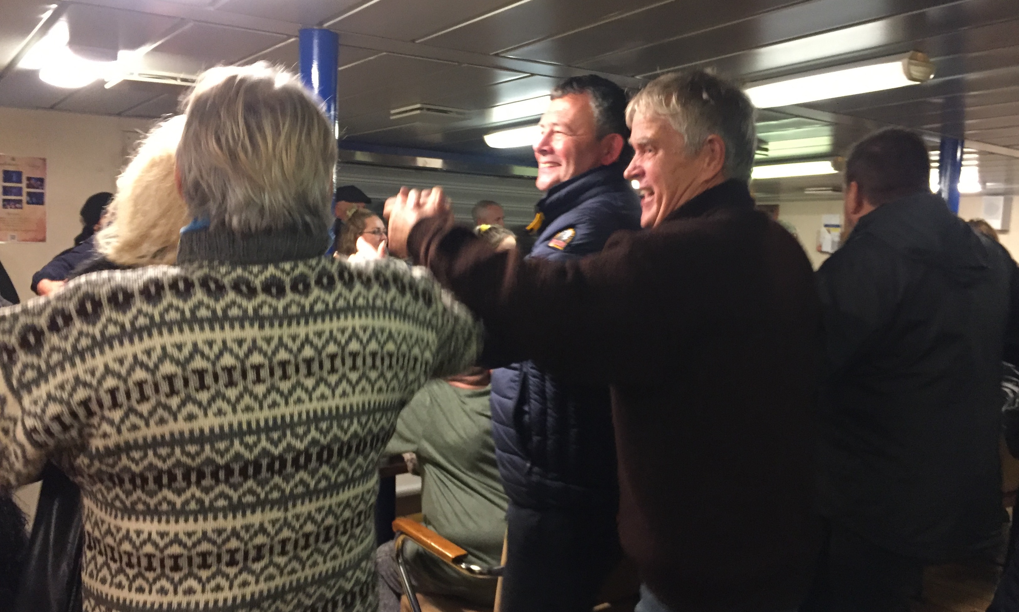 Eitt slíkt kvøld er lagið gott umborð á Ternuni, og á túrinum úr Nólsoy klokkan 23.30 í kvøld varð bæði sungið og dansað umborð.