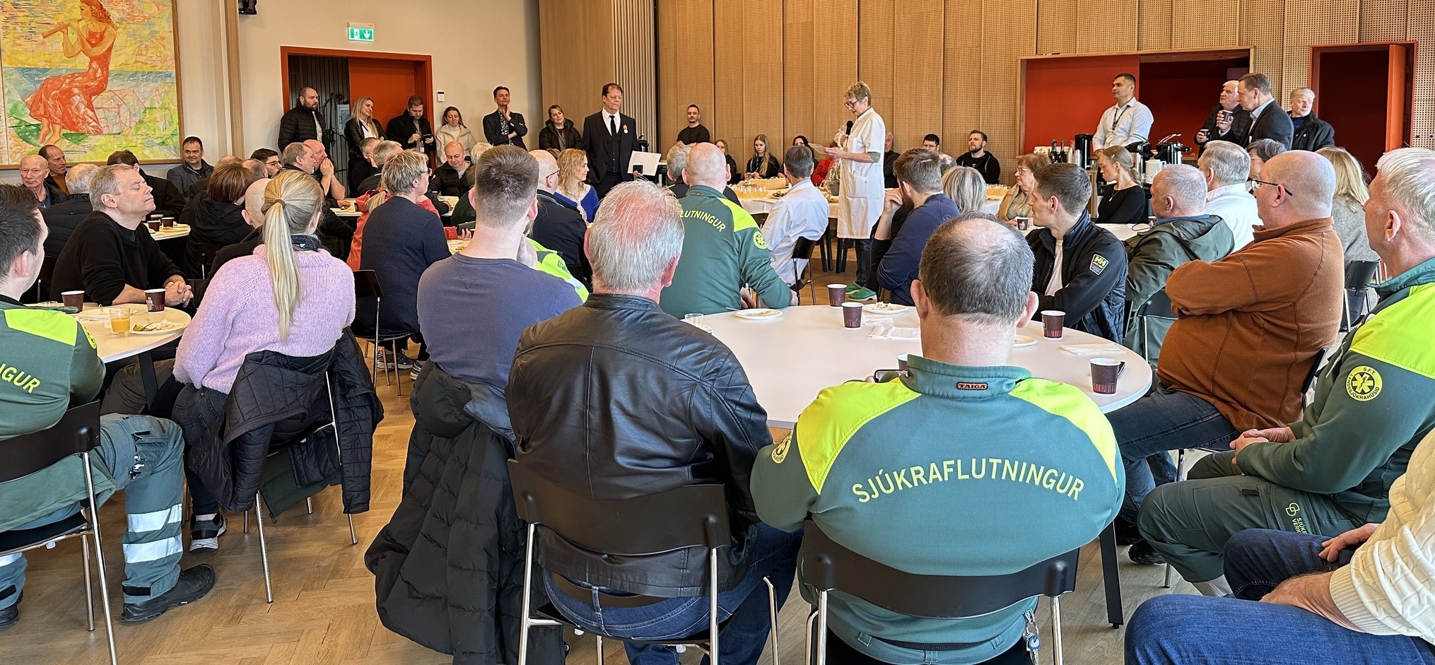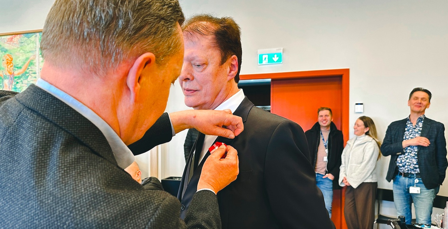 Fríggjadagin 20. februar var hátíðarhald í veitsluhøllini á Landssjúkrahúsinum, tá Ove Berg Jacobsen fekk handað Kongens Fortjenstmedalje fyri 40-ára trúgva tænastu í Sjúkraflutningstænastuni.