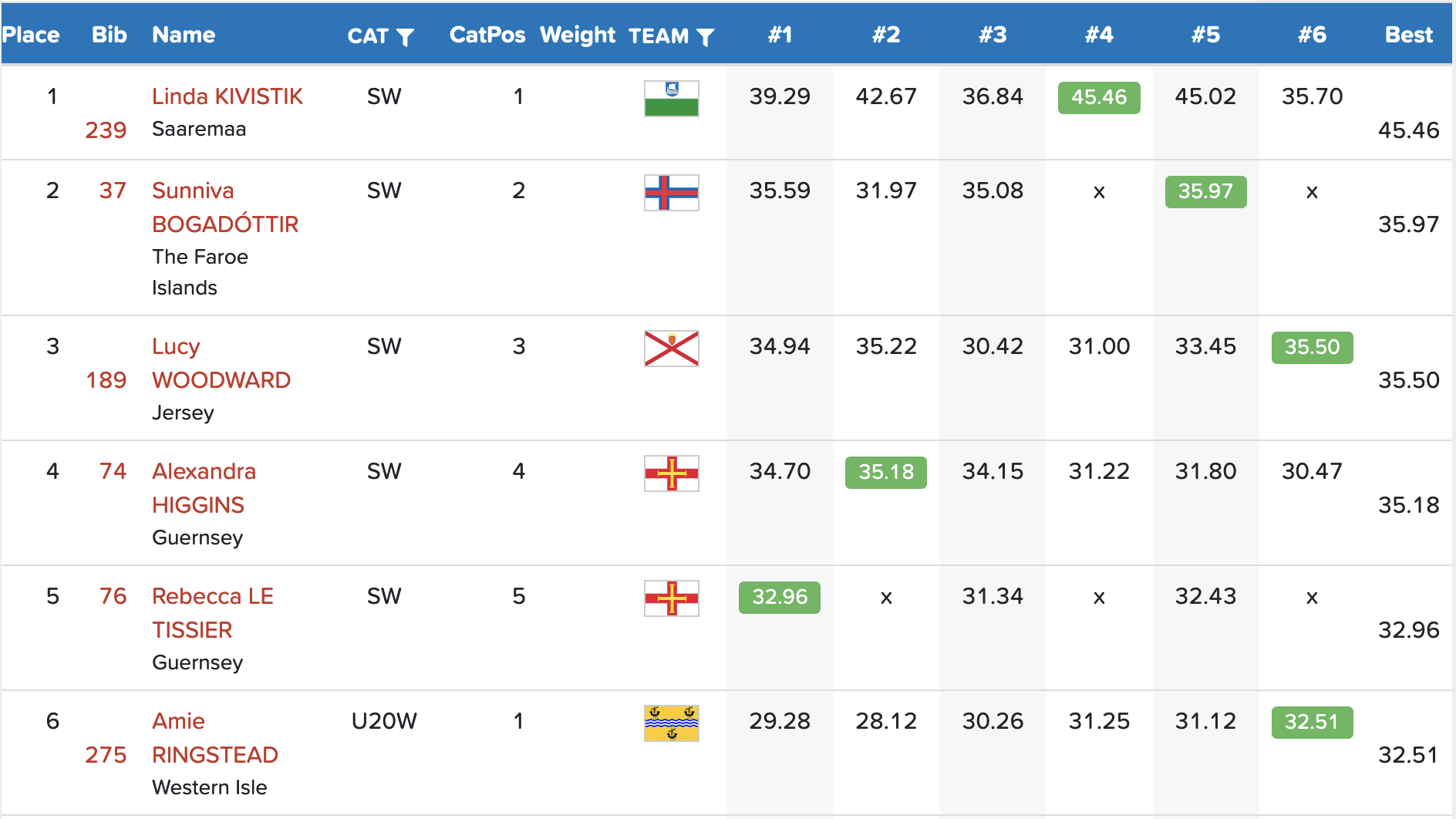 Linda Kivistik úr estiska Saaremaa vann oyggjaleikirnar við kastinum 45,46 metrum.