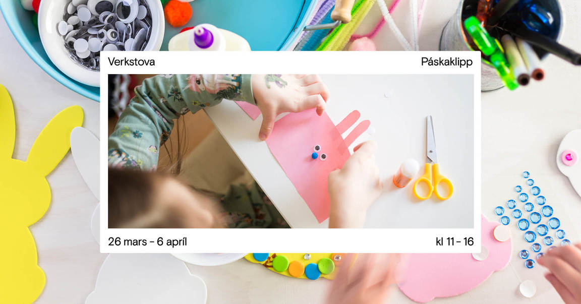 - Vit klippa og tekna páskaprýði í vøkrum litum og skapum. Við borðini í forhøllini eru myndaformar, pappír, saksar, tussjir, fjaðrar og annað spennandi tilfar og uppgávur, skrivar Listasavnið.