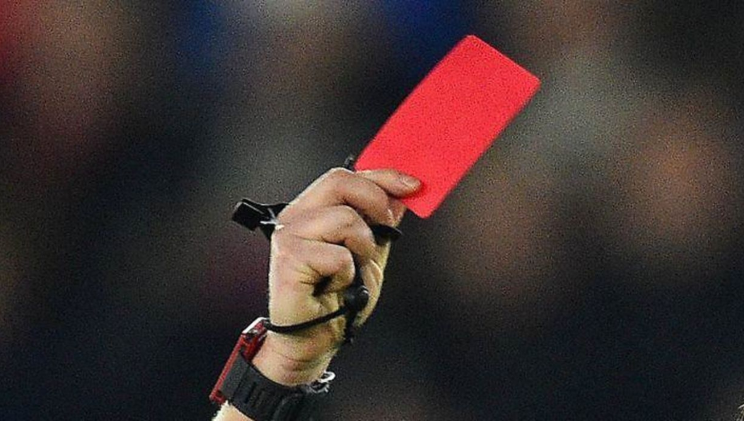Fyri fyrstu ferð í ár hevur reyða kortið verið á lofti í bestu fótbóltsdeildini.