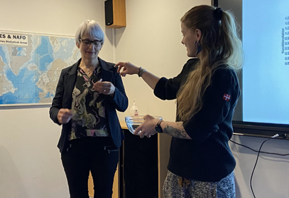 Lutakastið varð hildið á Havstovuni í Nóatúni í Havn. Durita Sørensen tók tann vinnandi seðilin. Hallbjørg Hansen frá Landsgrannskoðanini helt eyga við, at lutakastið fór fram á rættan hátt. Havstovan takkar Hallbjørg og Duritu fyri hjálpina og ynskir Piyamon hjartaliga tillukku við vinninginum. skrivar hav.fo.