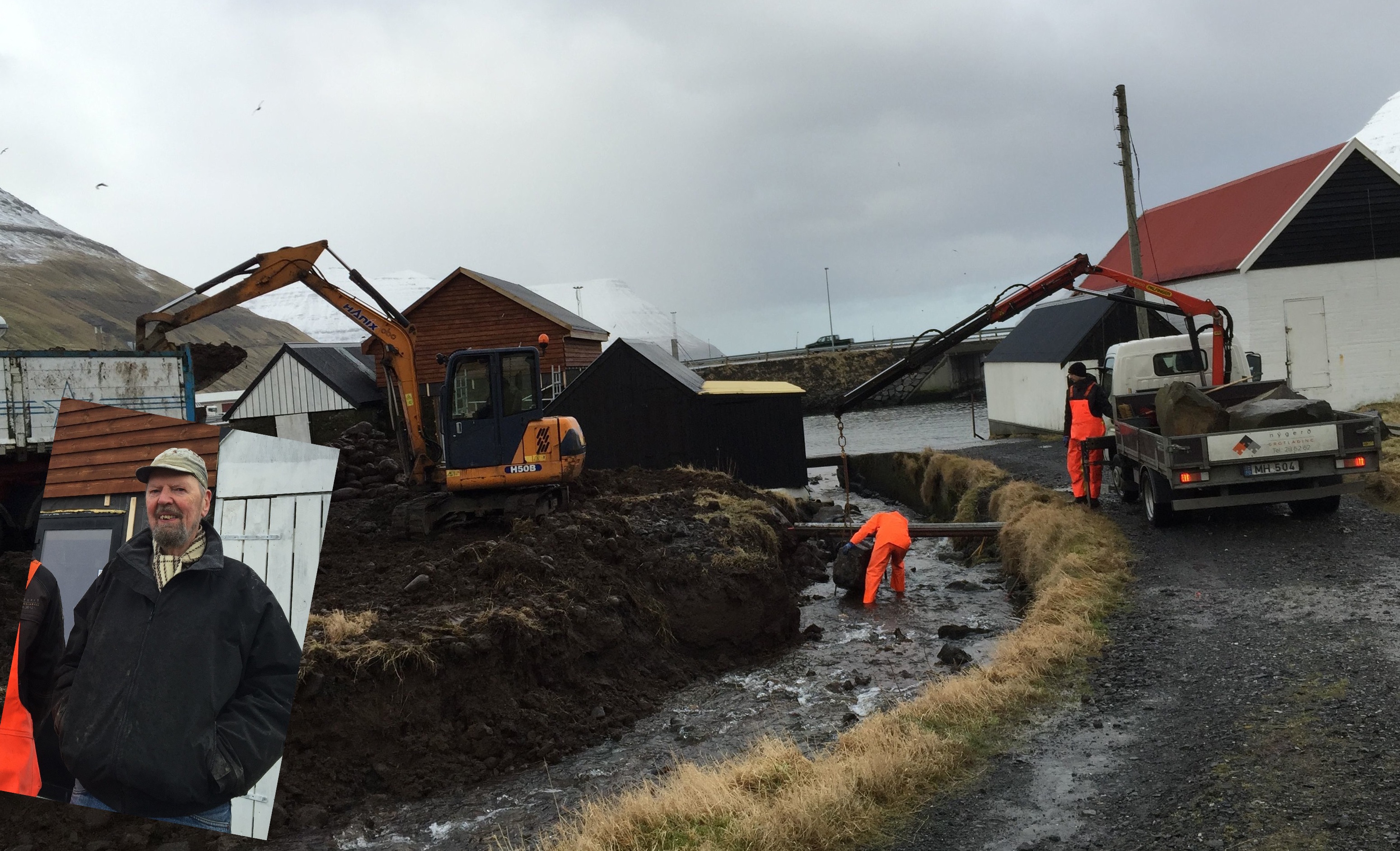 Laðingararbeiðið, sum nú verður gjørt við Mataránna og planeringsarbeiði, sum er partur av sama arbeiði, verður í stóran mun fíggjað av privatum - og í hesum førinum serliga av Jógvan Eliasi Joensen.