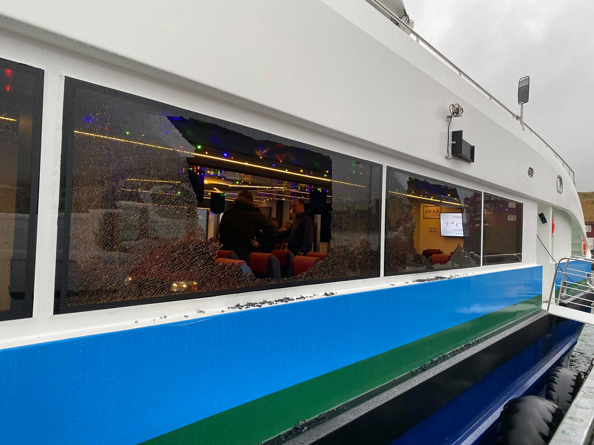 Erla Kongsdóttir kom fyri løtu síðani aftur á Havnina við knústum rútum í stýriborðssíðuni.