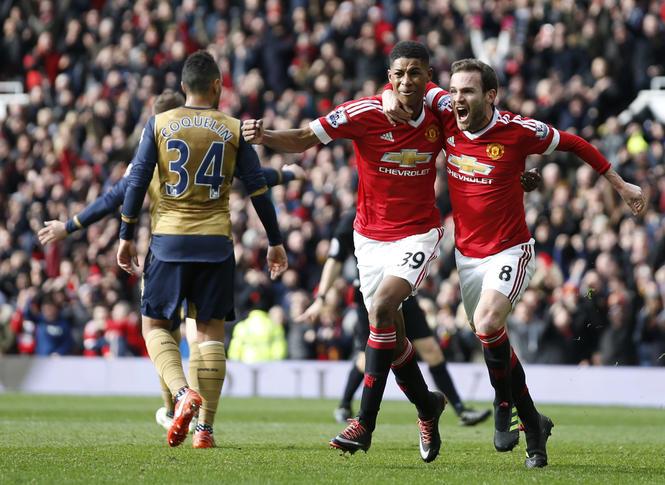 Á liðnum hjá Manchester United vóru tað fleiri ungir og evnaríkir leikarar, sum fingu møguleikan frá byrjan. Marcus Rashford, sum hóskvøldið spældi sín fyrsta dyst fyri Manchester United ímóti FC Midtjylland, fekk í dag afturval í uppstillingini, og hann takkaði enn einaferð fyri álitið. Marcus Rashford var suverent dagsins leikari á Old Trafford, tí hann skoraði nevniliga tvey av málunum, umframt at hann legði upp til málið hjá Ander Herrera. Fyri Arsenal skutu Danny Welbeck og Mesut Øzil málini.