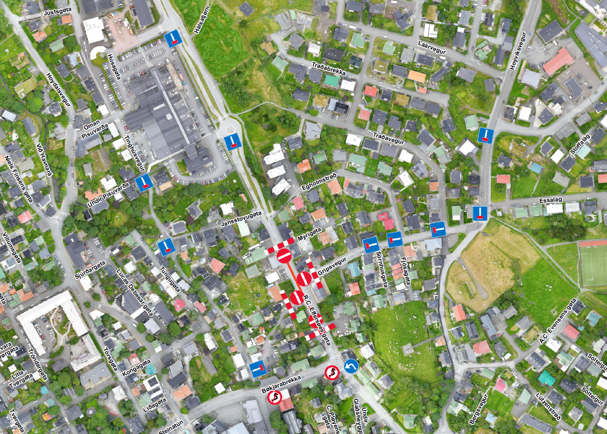 Í sambandi við arbeiði verður ein partur av R. C. Effersøes gøtu, frá Bøkjarbrekku niðan til rundkoyringina við SMS, stongdur fyri allari ferðslu mánanáttina 9. mai frá kl. 23 til týsmorgunin 10. mai kl. 6.