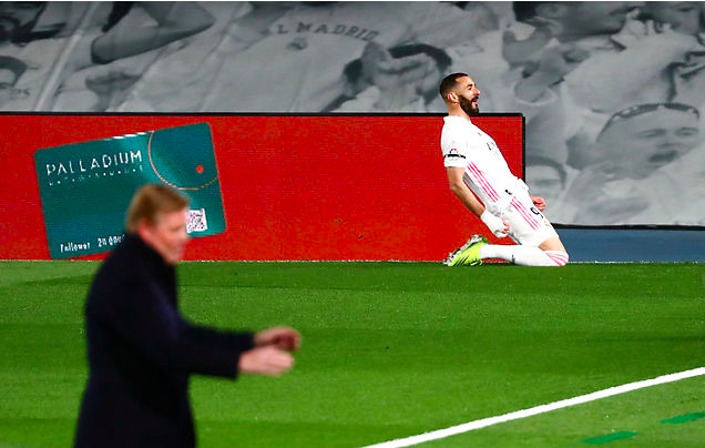 Tað var fyrr var ein hegnisligur hælari frá Karim Benzema, eftir flatt innleggur úr høgru, meðan tað seinna var eitt fríspark, sum rakti ein spælara hjá FC Barcelona í bakið og snýtti málverjan. Mest óvæntaði málskjúttin í gjár var Oscar Mingueza, ið minkaði um munin fyri gestirnar úr Barcelona.
