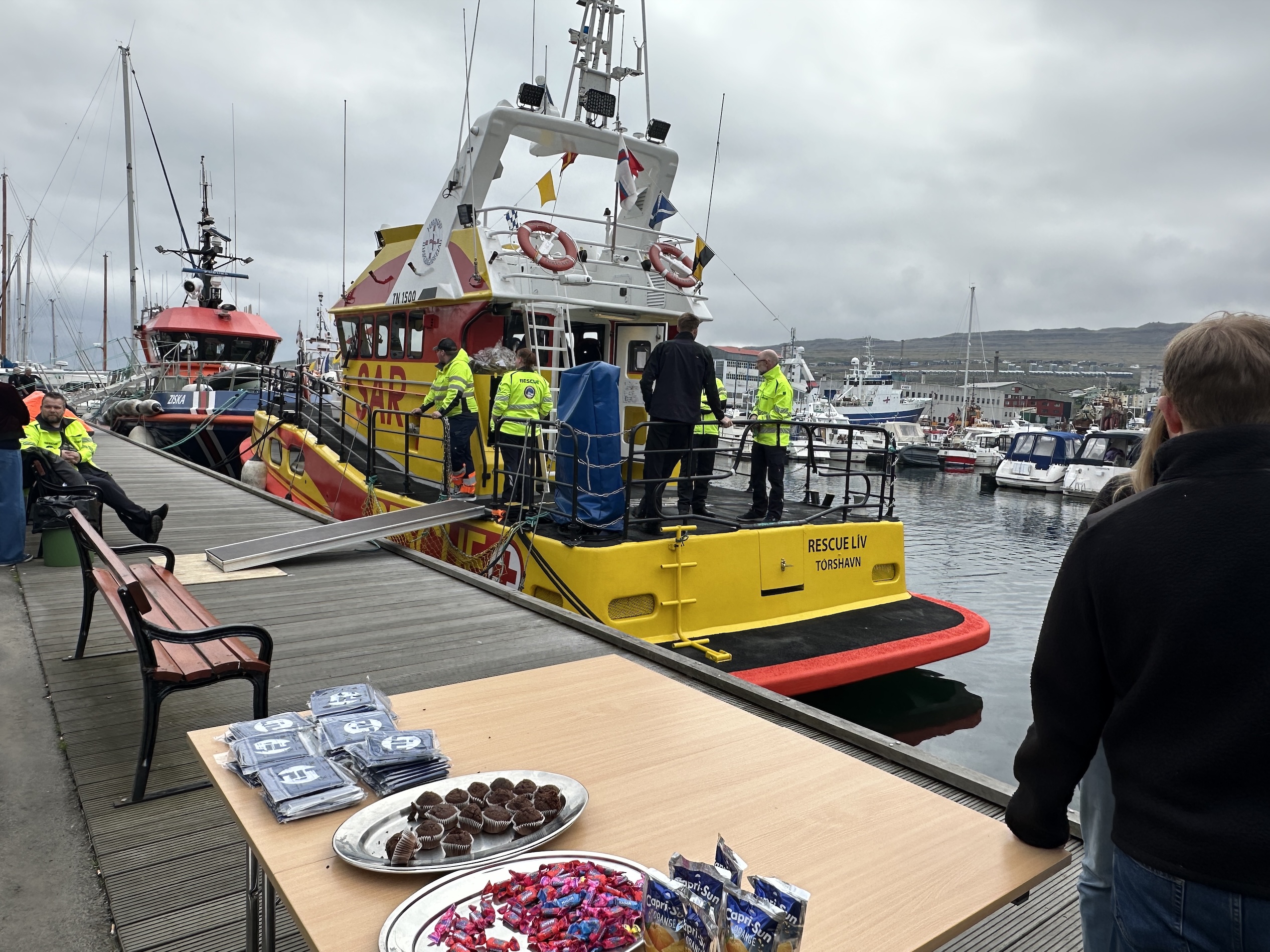 Móttøka var á bryggjuni út fyri hølunum hjá Tórshavnar Bátafelag úti undir Bakka, har høvi var at koma umborð og síggja nýggja bátin. Víst varð eisini nógv spennandi útgerð hjá Havnar Bjargingarfelag, Fjallabjargarunum og Dronutoyminum.