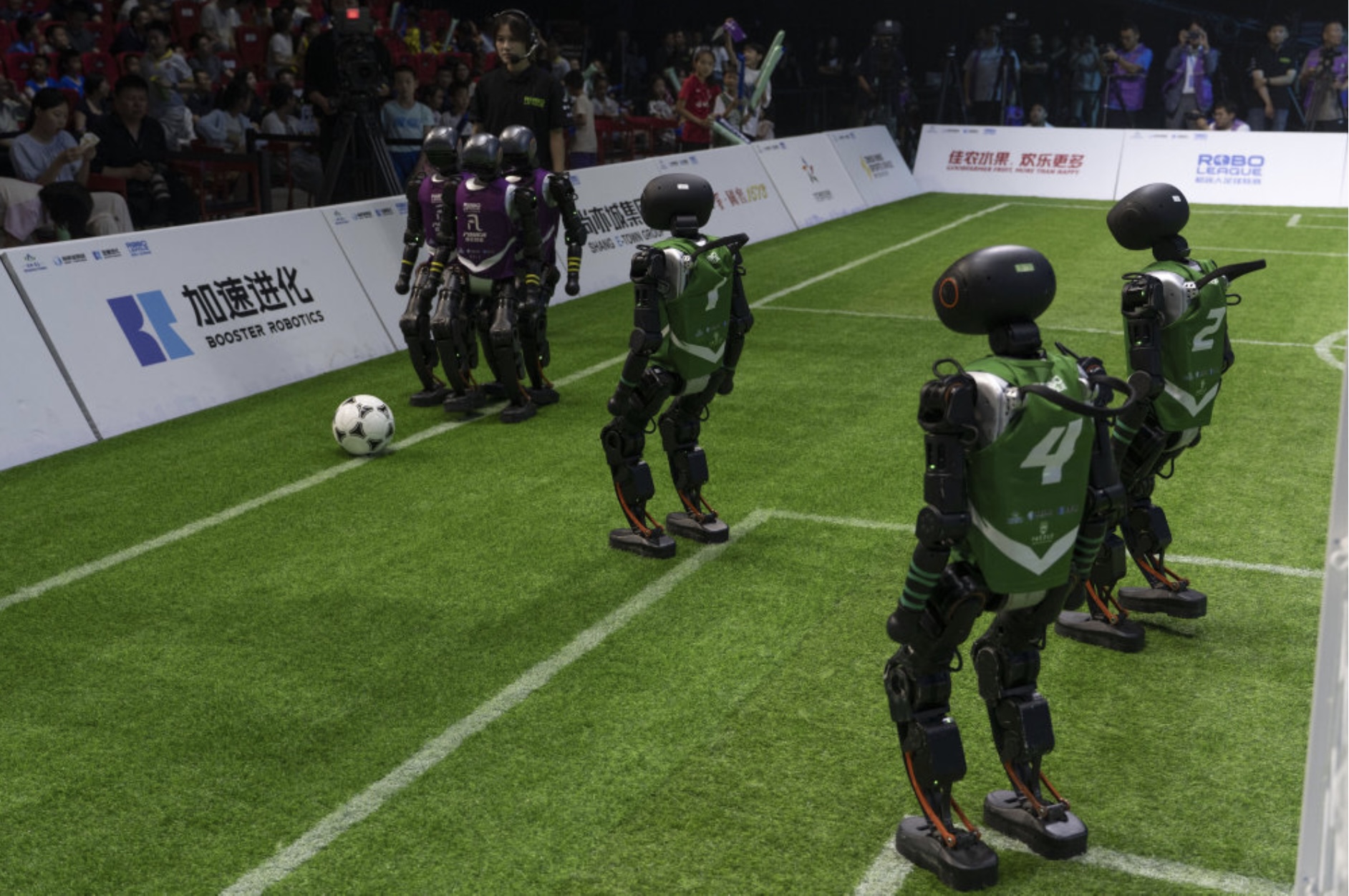 Robottarnir á vøllinum vóru útgjørdir við sensorum, soleiðis at teir kundu finna bóltin og navigera á vøllinum.