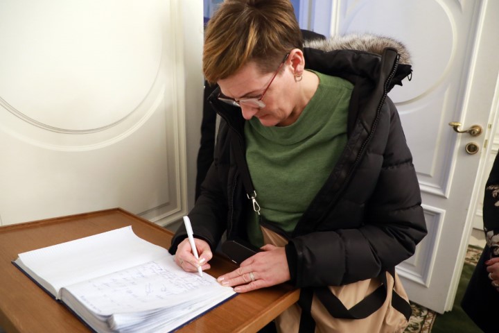 Vitjað varð m.a. inni á stóra savninum sum er um kringsetuna. Her legði Jógvan Skorheim, borgarstjóri blómur og skrivað samkenslukvøða í kondolencubókina.