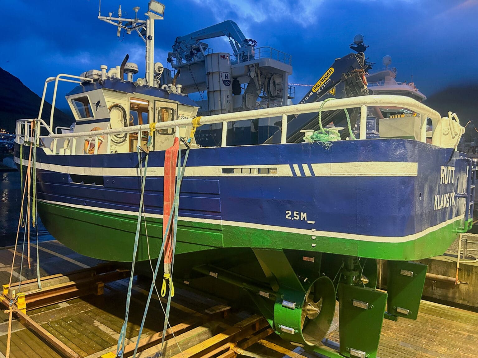 Tollaksmessumorgun, í dýrdarveðri á vágni í Klaksvík, varð alibáturin Rutt, sum  Bakkafrost eigur, flotaður